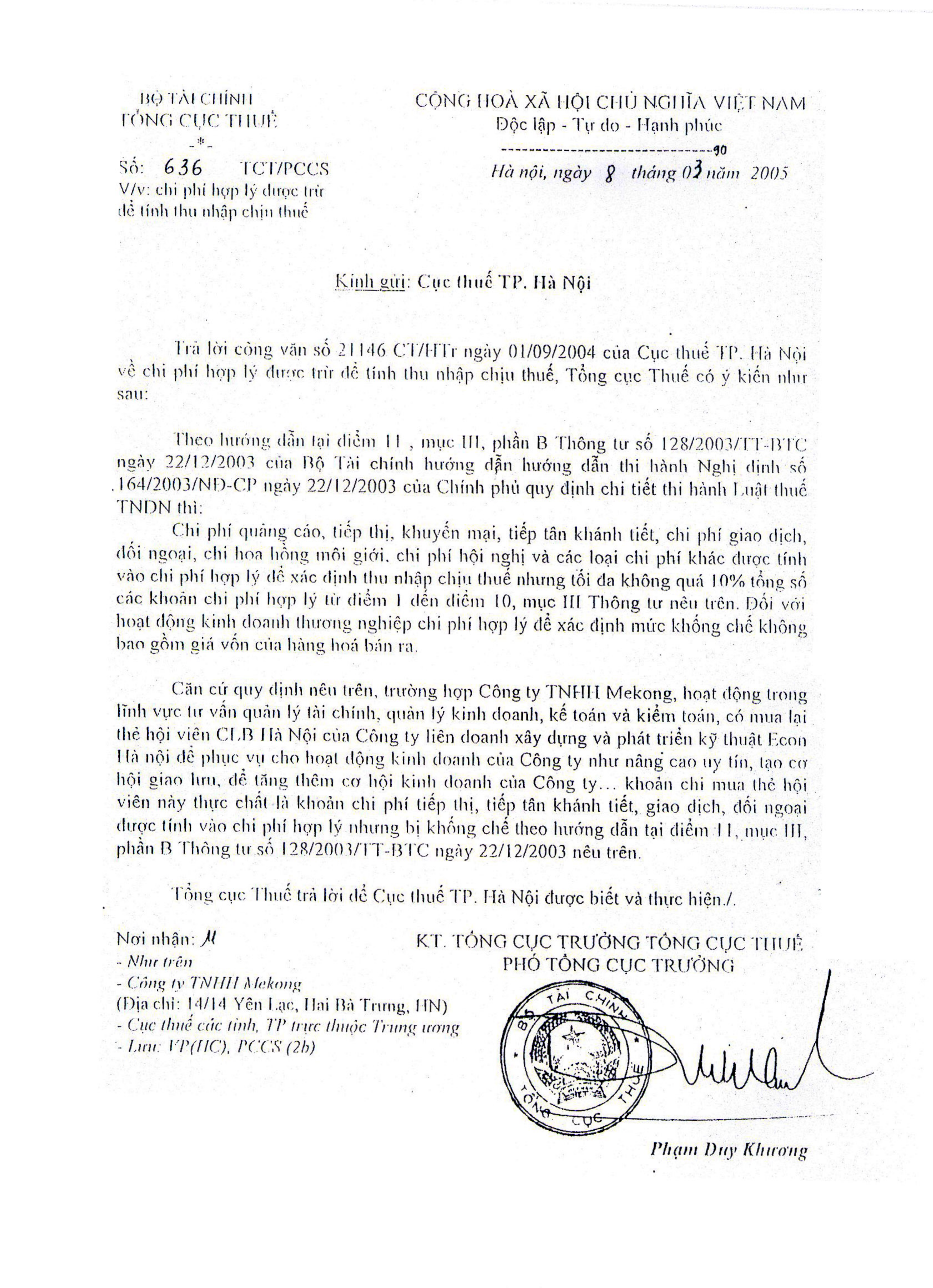 Công văn 636/TCT/PCCS của Tổng cục Thuế
