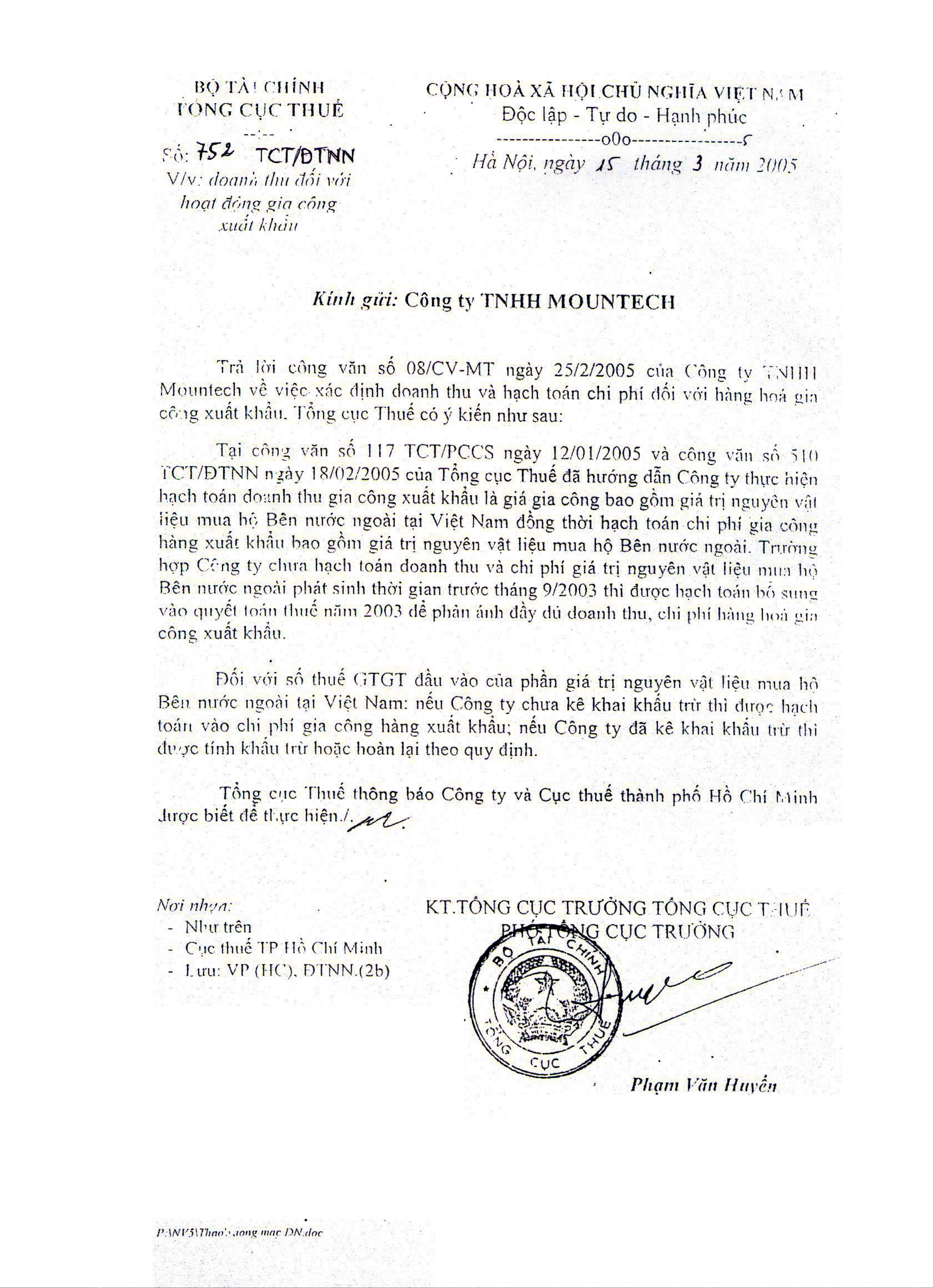 Công văn 752/TCT/ĐTNN của Tổng cục Thuế