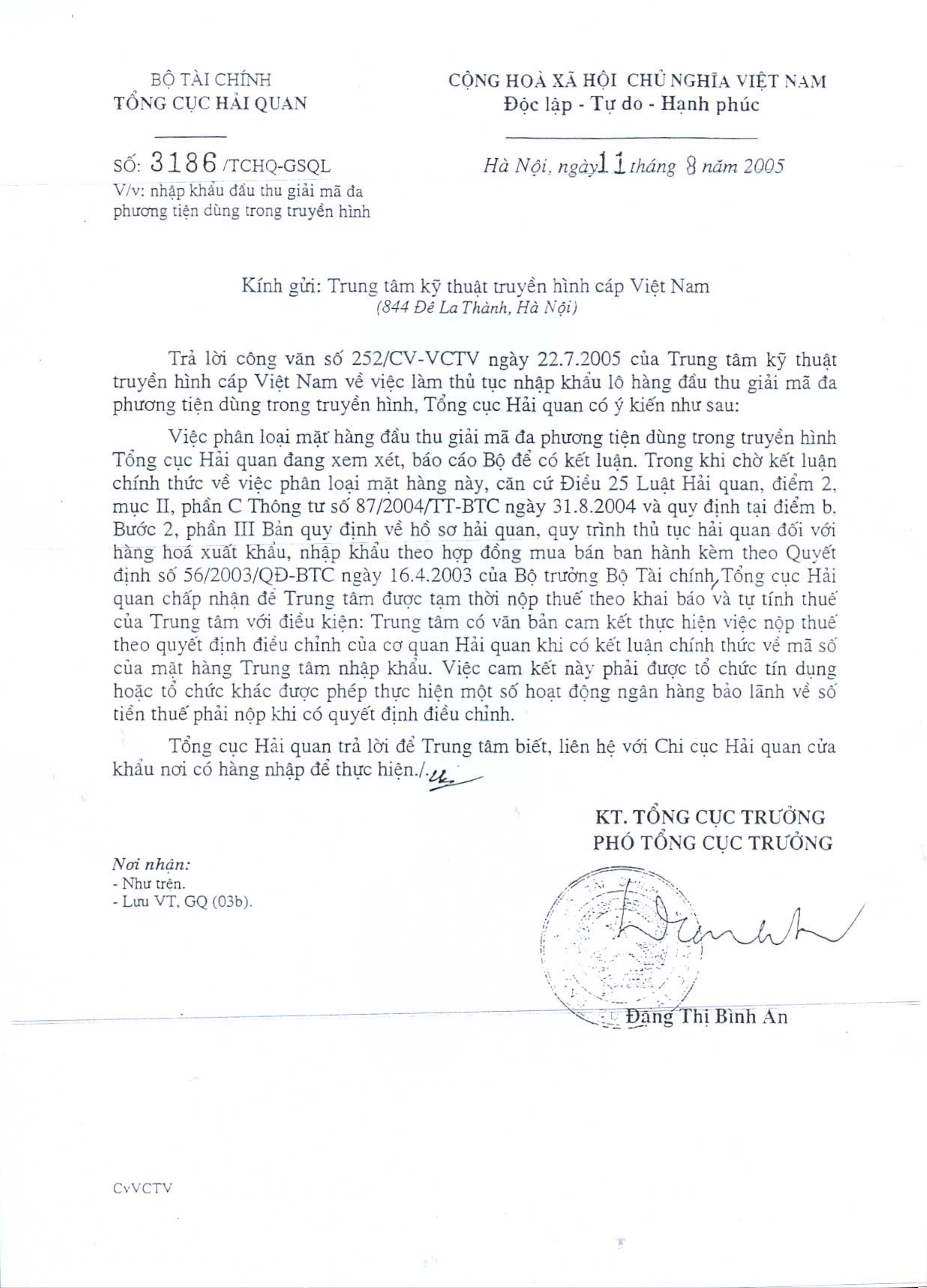 Công văn 3186/TCHQ-GSQL của Tổng cục Hải quan về việc nhập khẩu đầu thu giải mã đa phương tiện dùng trong truyền hình