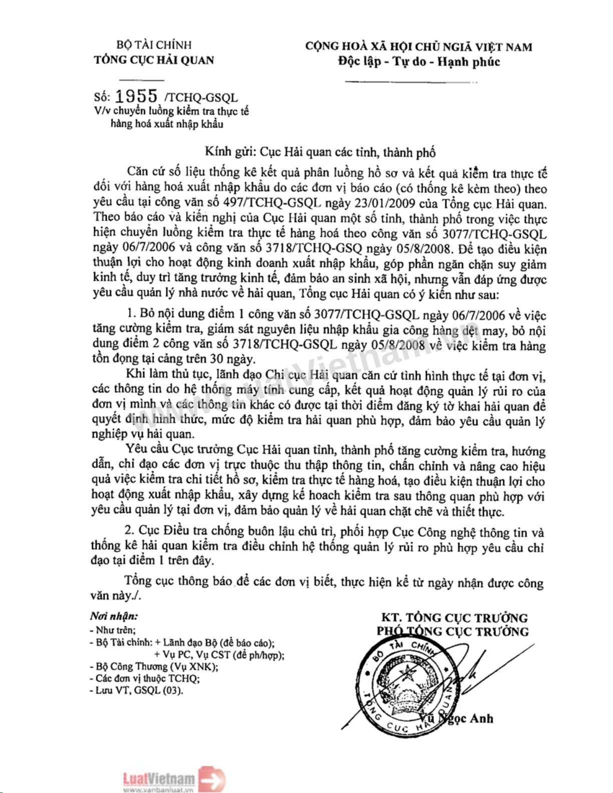 Công văn 1955/TCHQ-GSQL của Tổng cục Hải quan