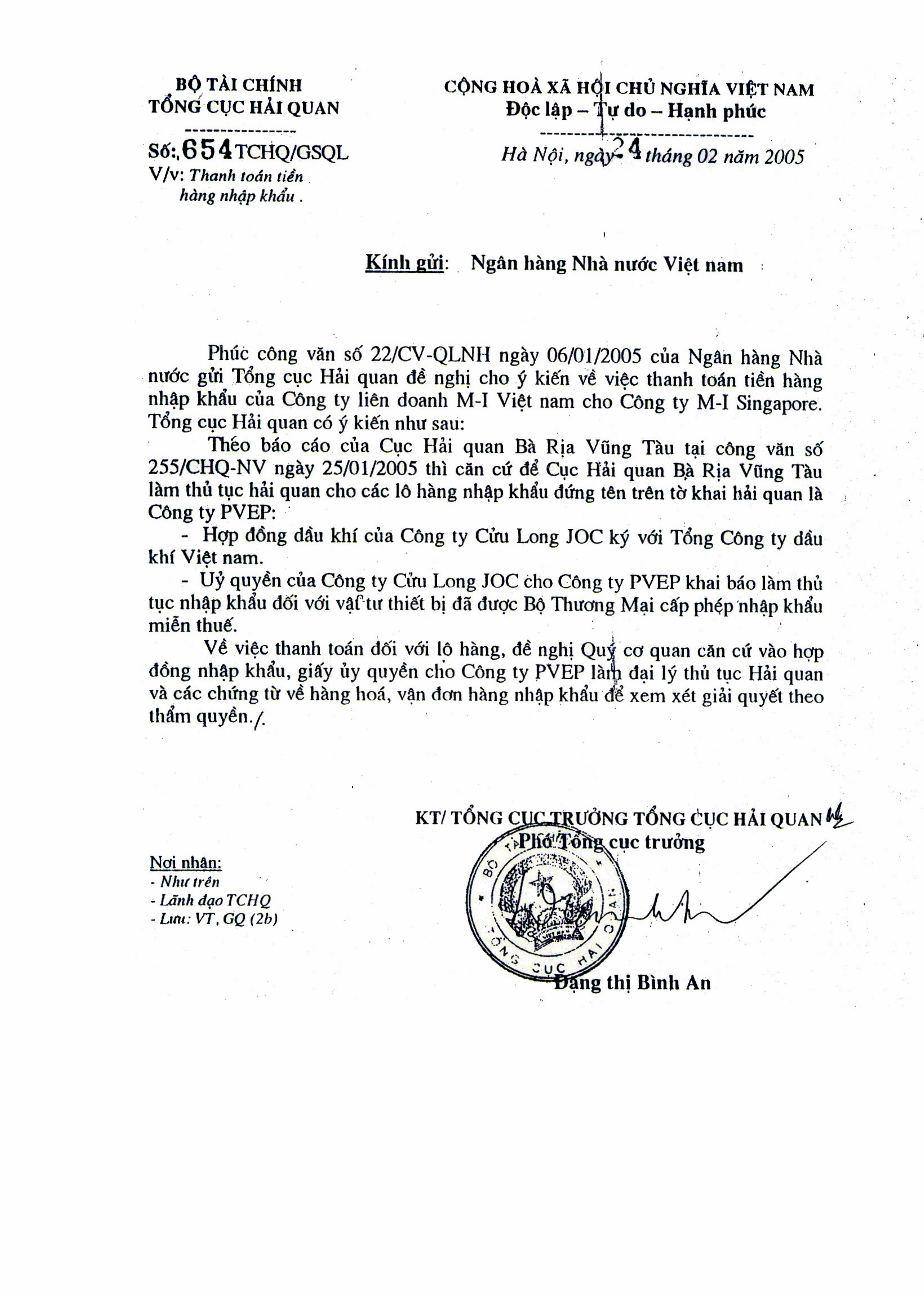 Công văn 654/TCHQ/GSQL của Tổng cục Hải quan về việc thanh toán tiền hàng nhập khẩu
