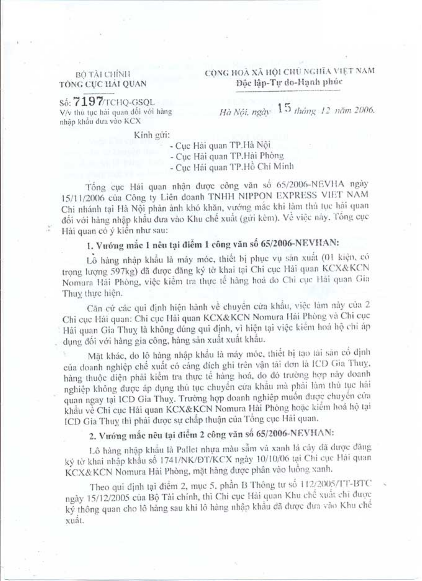 Công văn 305871/TCHQ-GSQL của Tổng cục Hải quan về việc thủ tục hải quan đối với khách hàng nhập khẩu đưa vào khu chế xuất