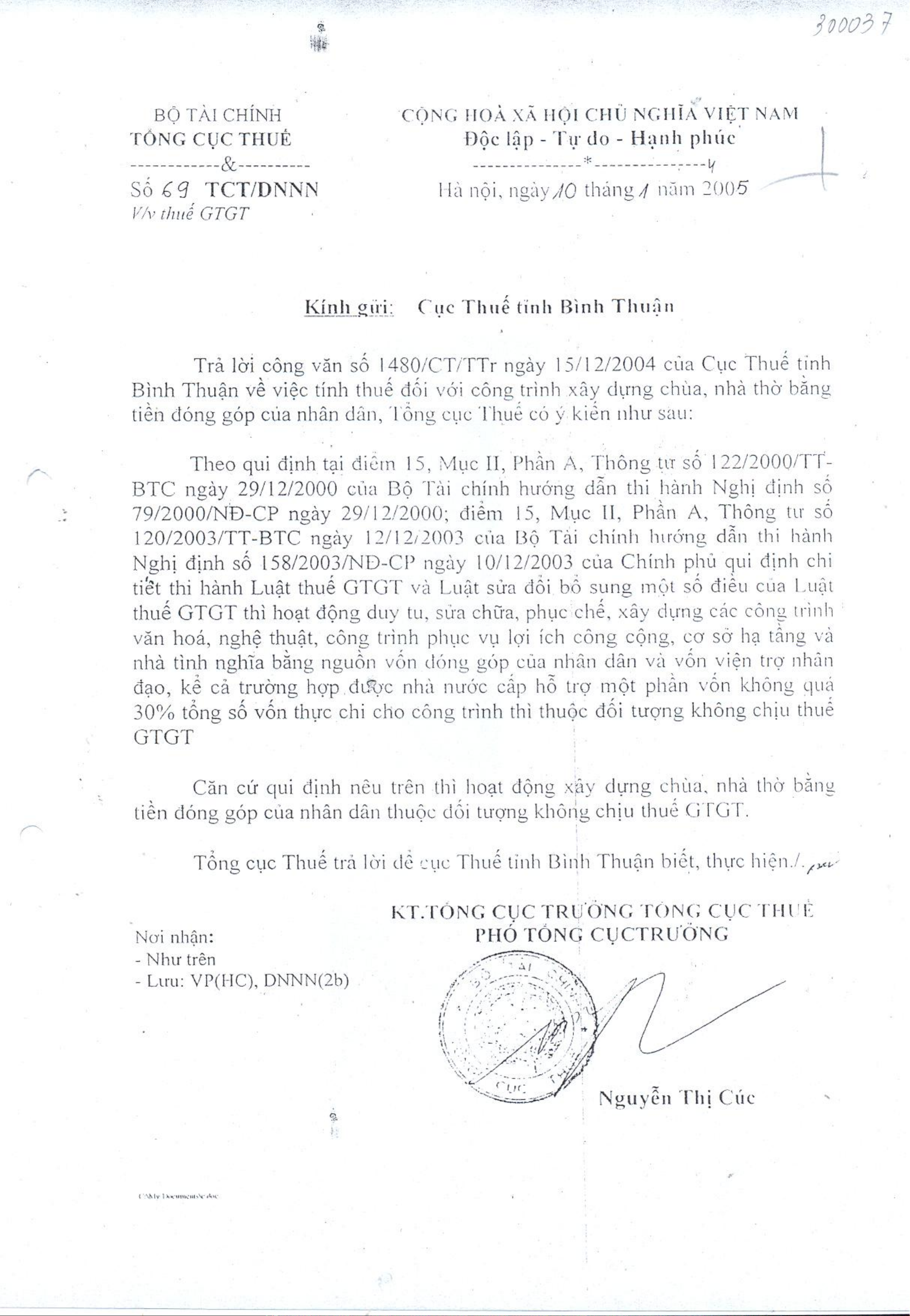 Công văn 69/TCT/DNNN của Tổng cục Thuế