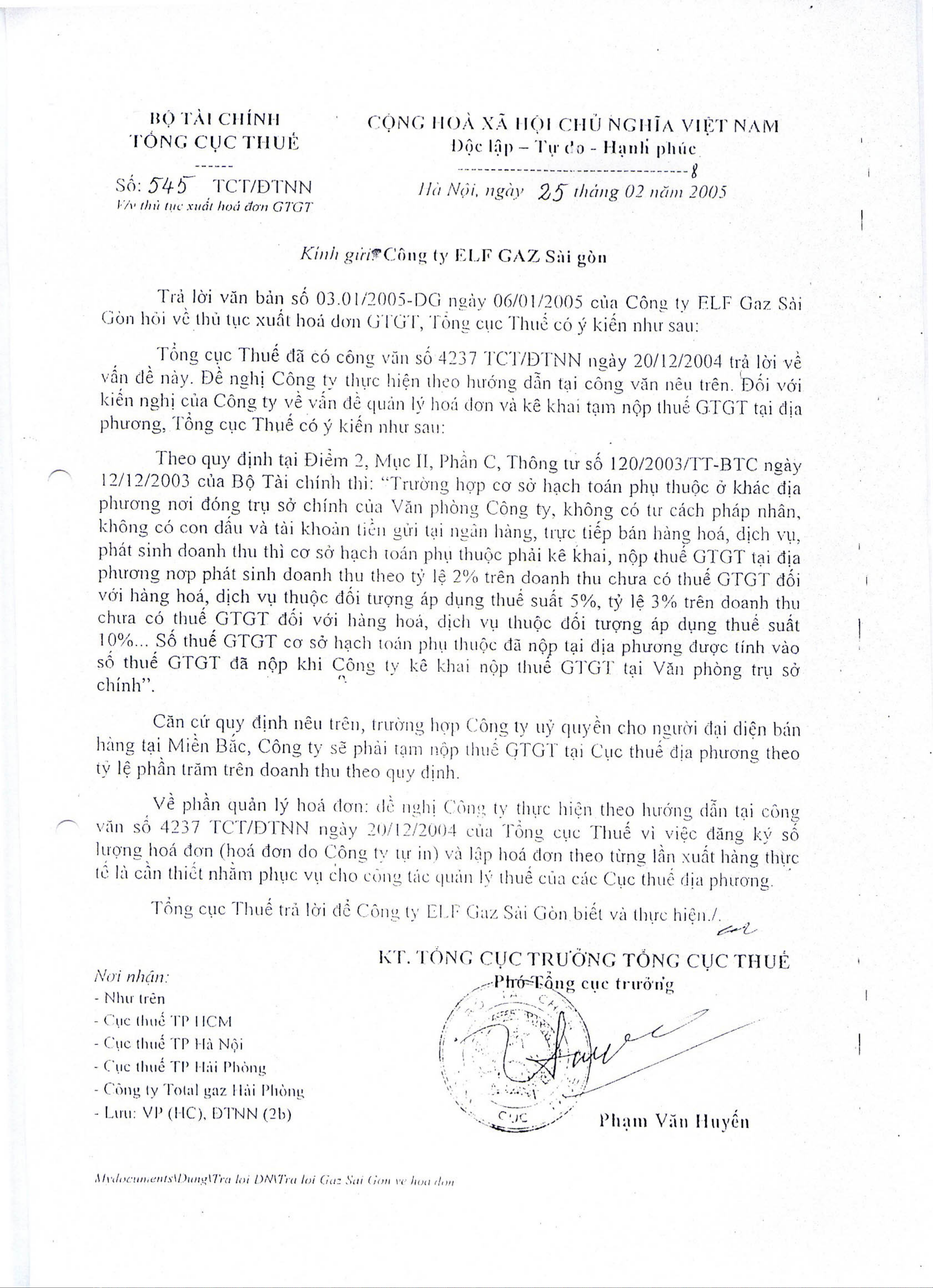 Công văn 545/TCT/ĐTNN của Tổng cục Thuế