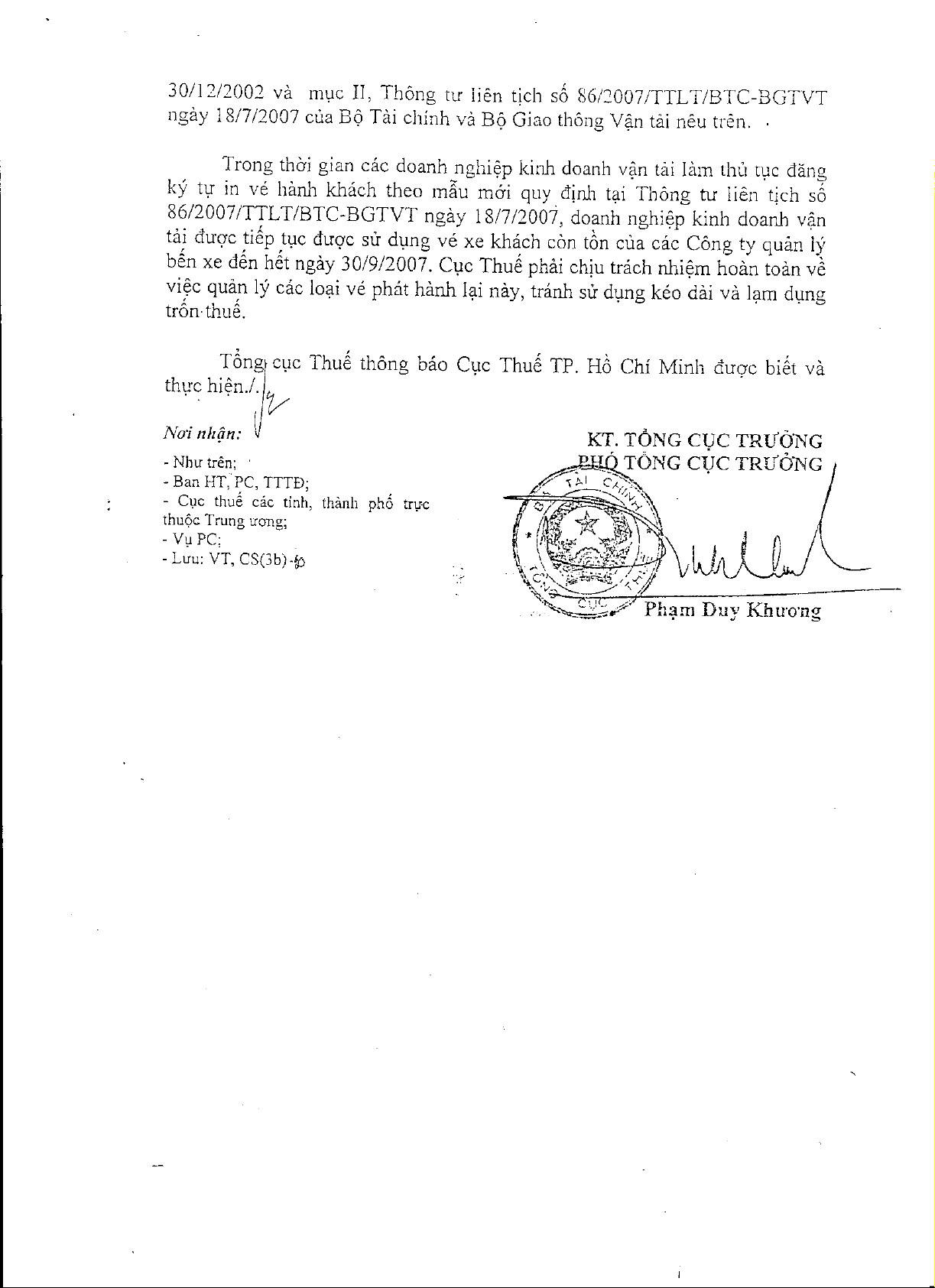 Công văn 3672/TCT-CS của Tổng cục Thuế về việc in và quản lý vé xe khách đối với đơn vị vận tải