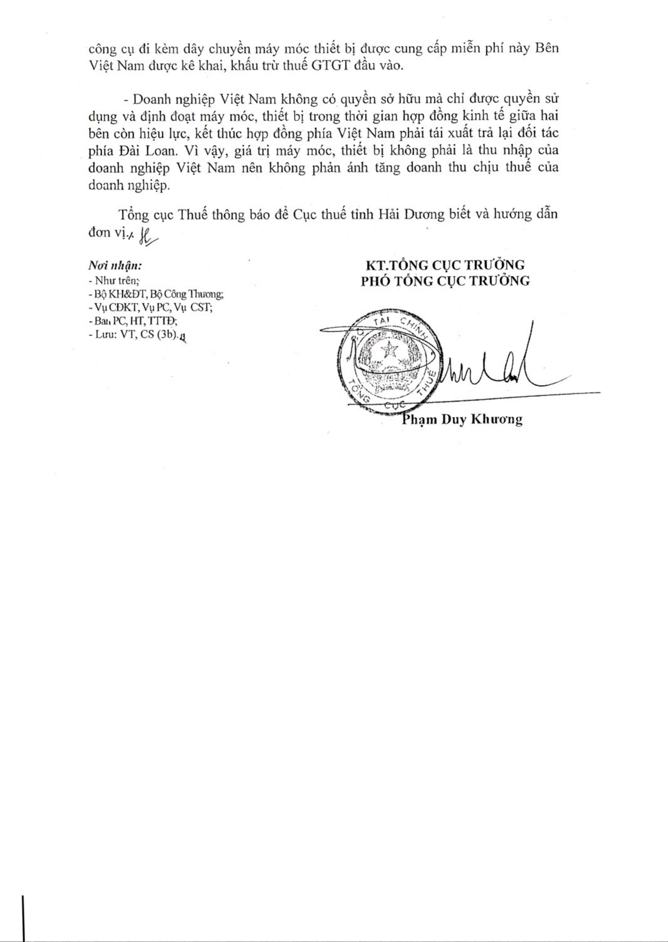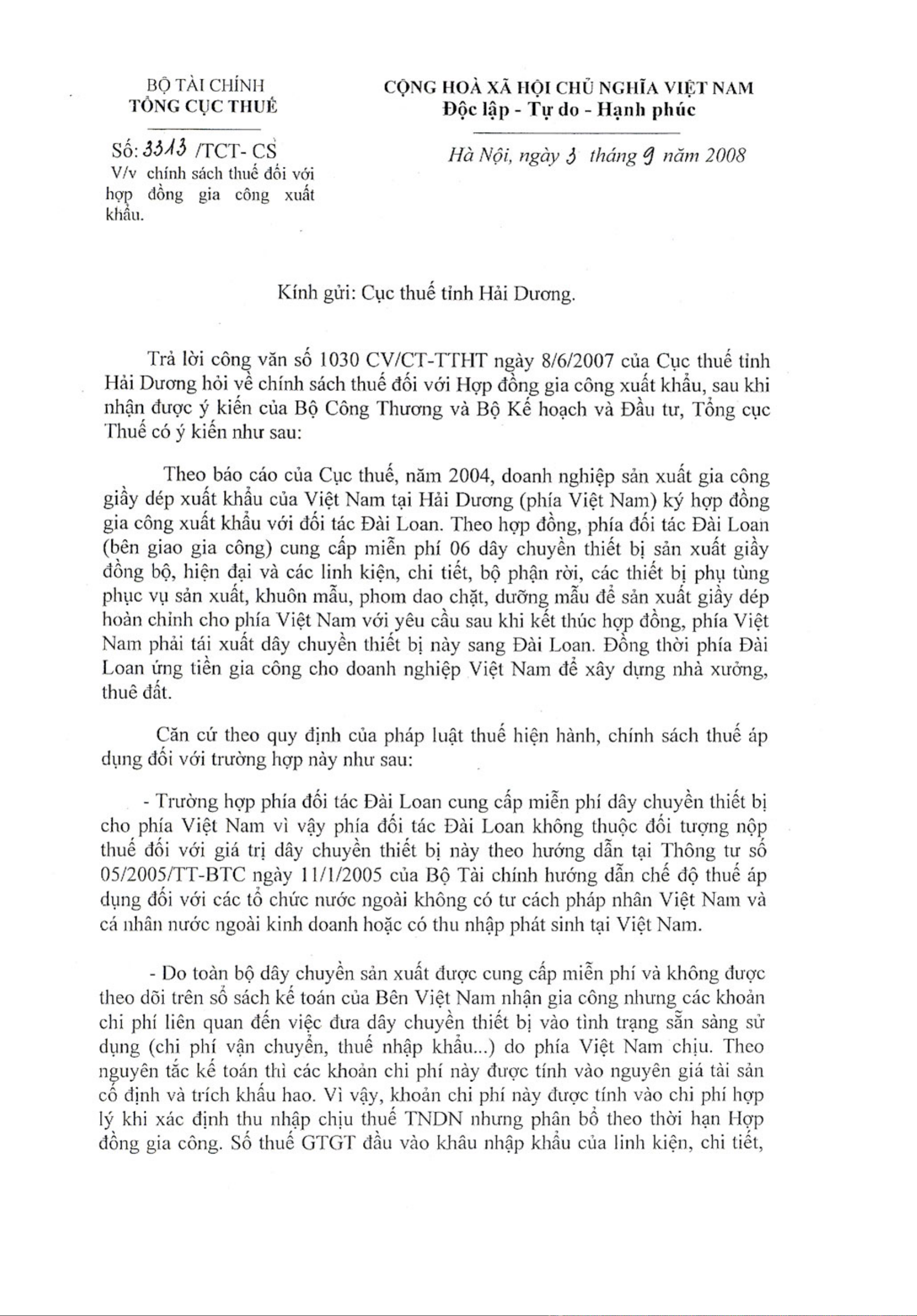Công văn 3313/TCT-CS của Tổng cục Thuế về việc chính sách thuế đối với hợp đồng gia công xuất khẩu