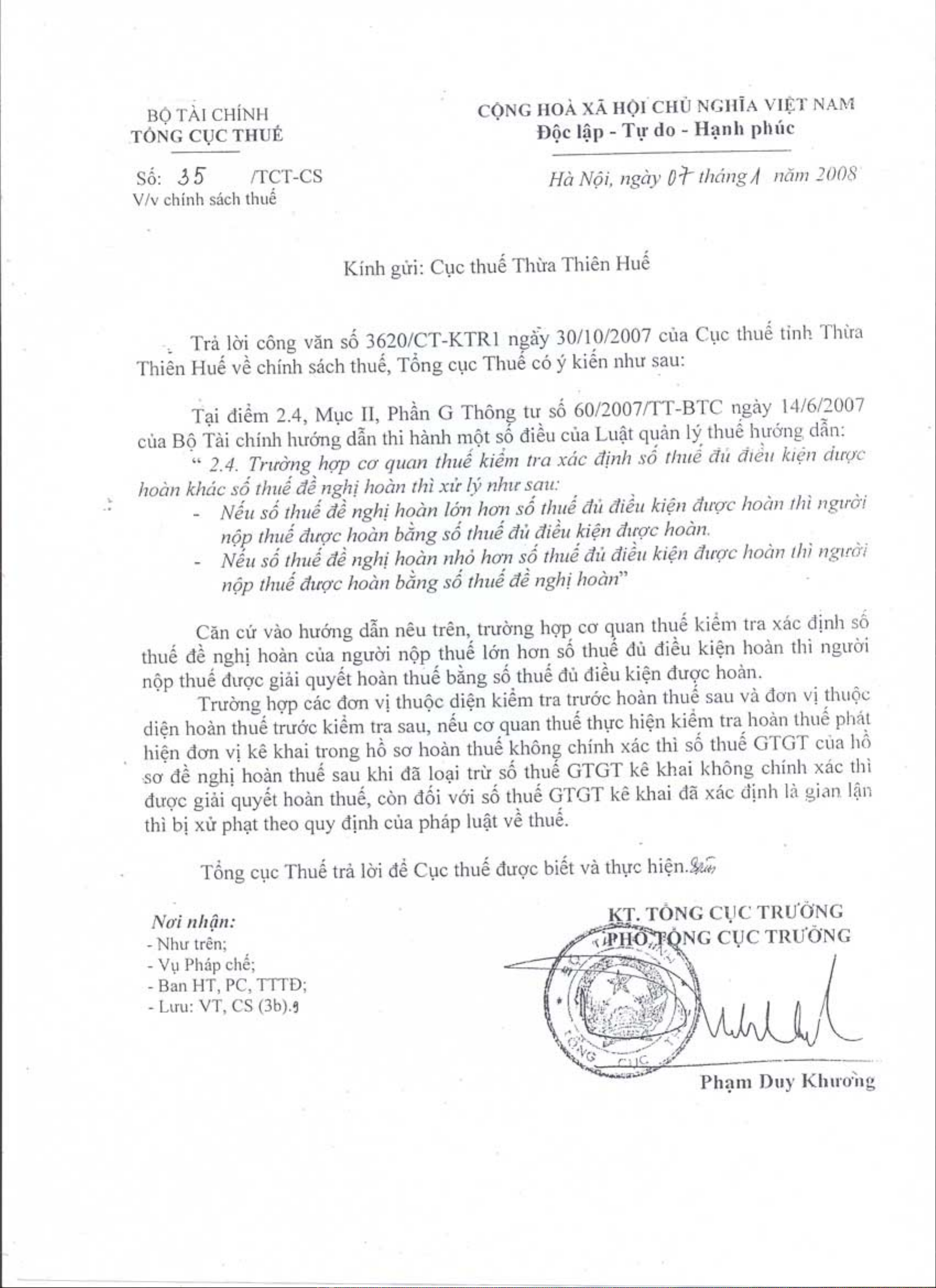 Công văn 35/TCT-CS của Tổng cục Thuế