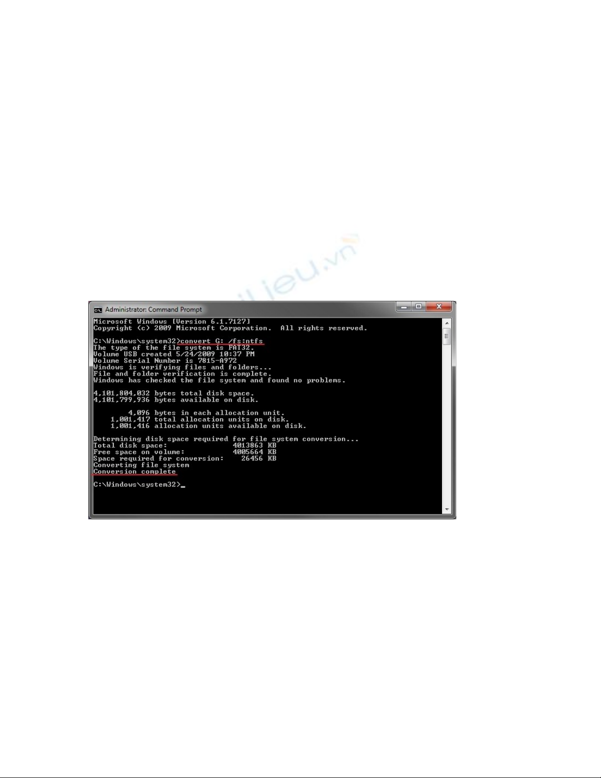 * Quá trình convert này là quá trình 1 chiều. Sau khi convert sang NTFS, bạn