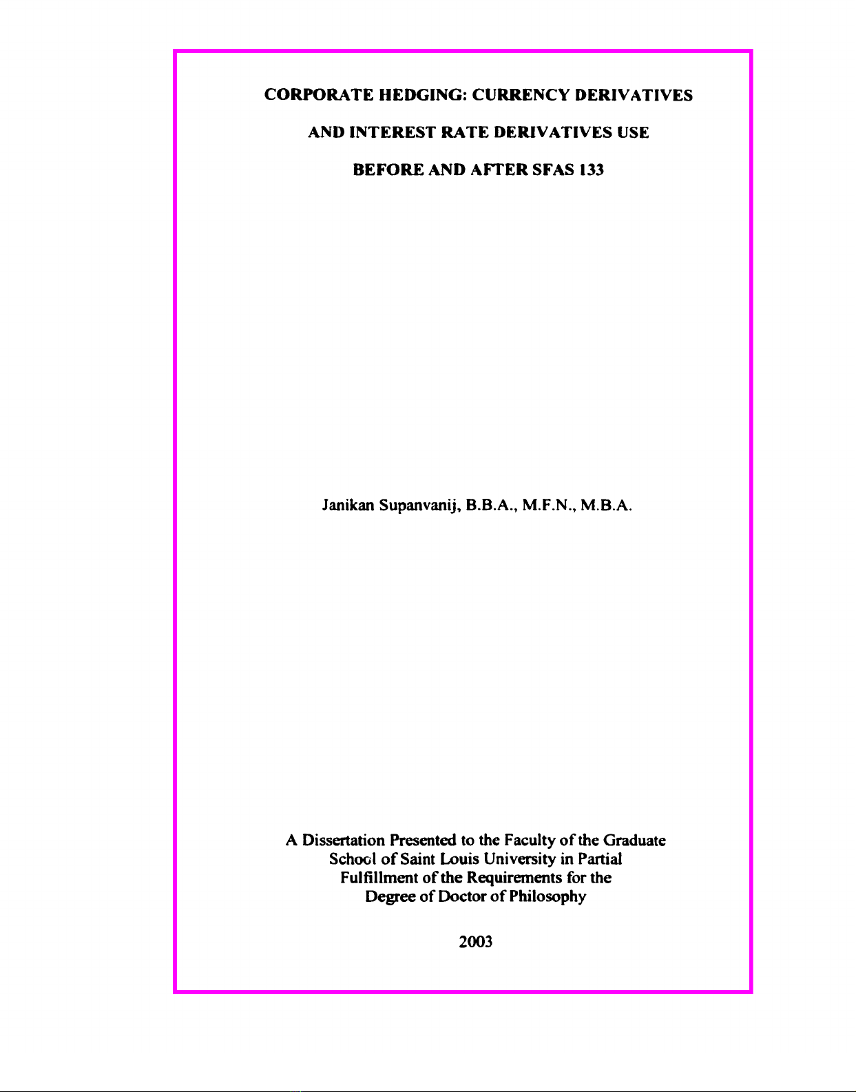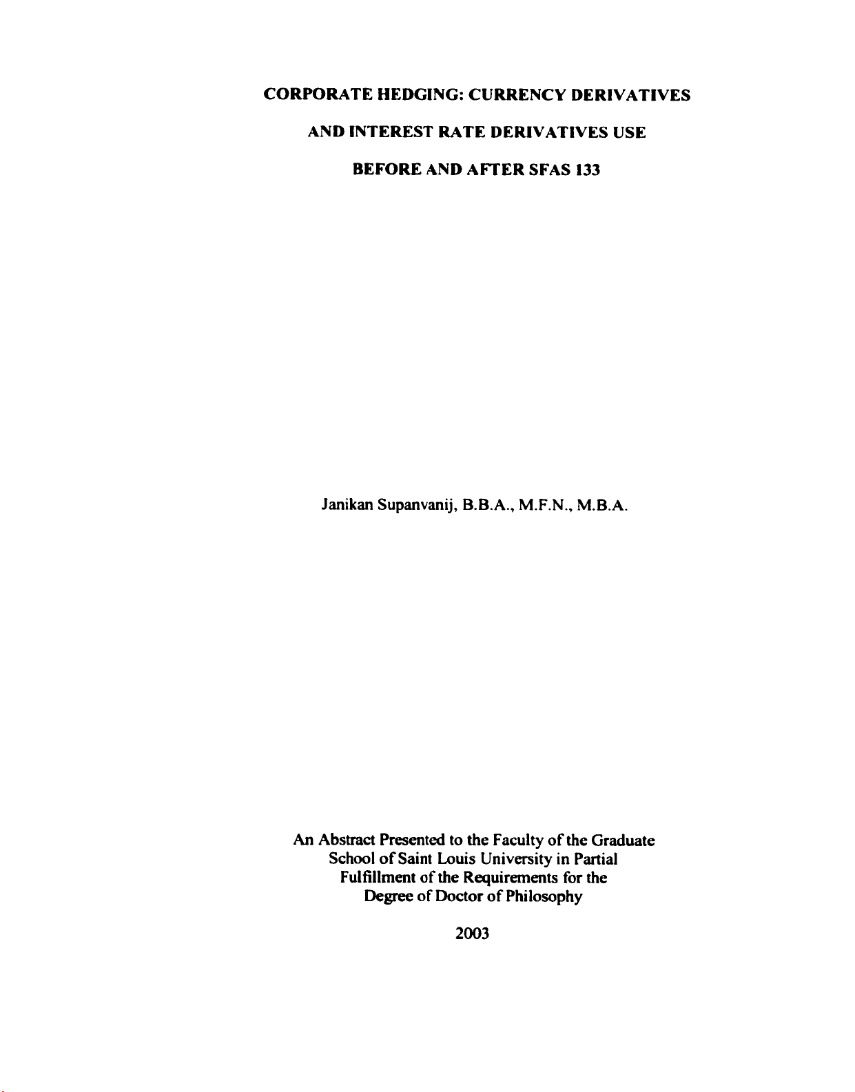 Research " CORPORATE HEDGING: CURRENCY DERIVATIVES AND INTEREST RATE DERIVATIVES USE BEFORE AND AFTER SFAS 133 "