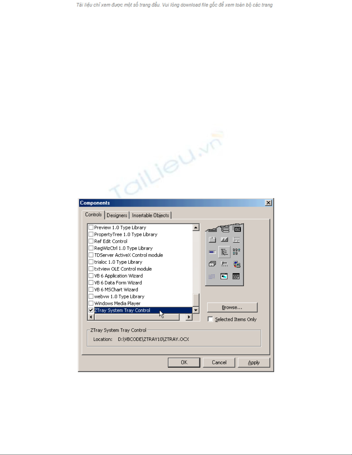 Vì ZTray đòi hỏi có một ImageList nên bạn phải click chọn thêm "Microsoft Windows Common Controls