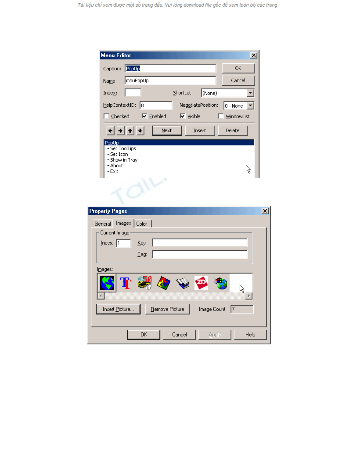 dùng làm biểu tượng chương trình trong System Tray. Chỉ có thể thay đổi lúc Design, lúc chương trình