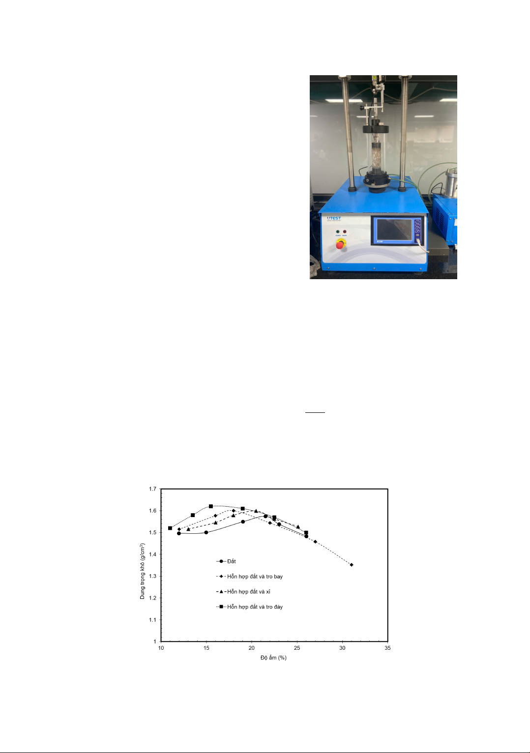 lượng tro (xỉ) trên khối lượng đất yếu) được cố định ở giá trị 10%. Trước khi tiến hành thí nghiệm