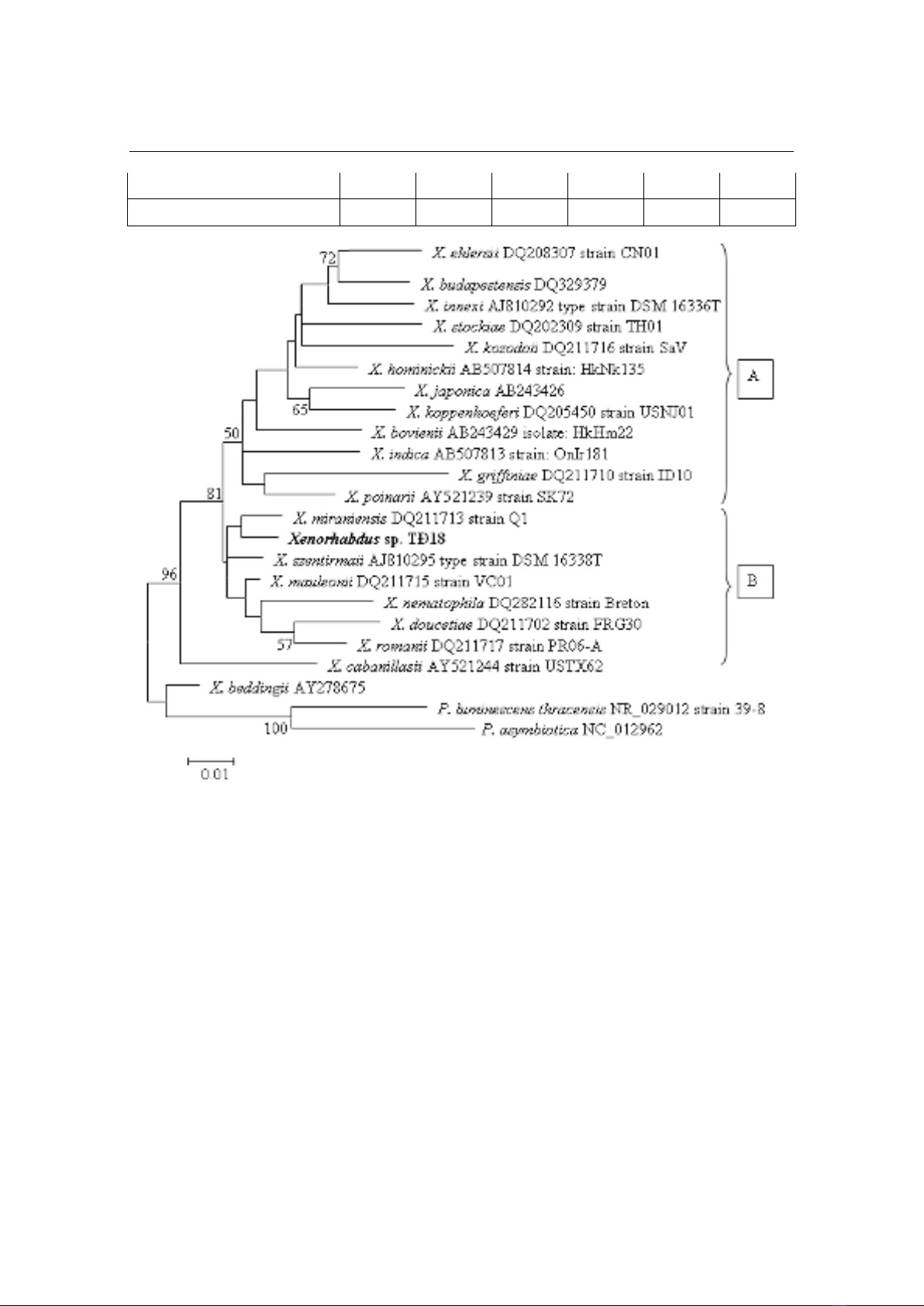 Chủng vi khuẩn XTĐ18 nằm trong nhóm B và có quan hệ di truyền rất gần gũi với loài X.