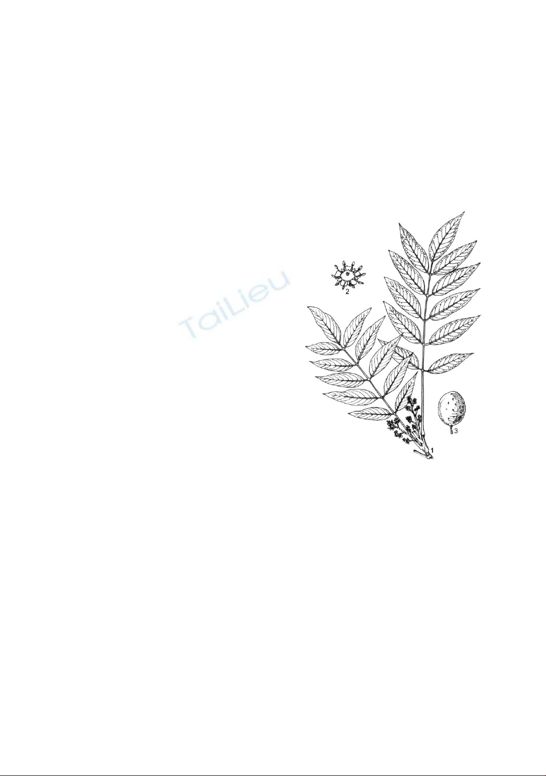 1. Cành mang hoa; 2. Hoa; 3. Quả