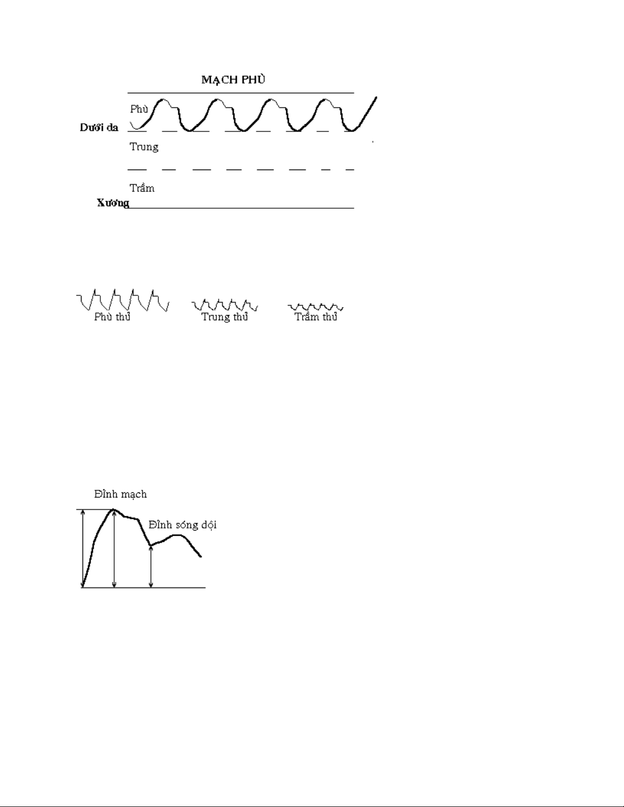 thủ ) thì thấy đường cong động mạch nổi lên nhiều, càng đặt thêm áp lực (trung và trầm thủ) thấy