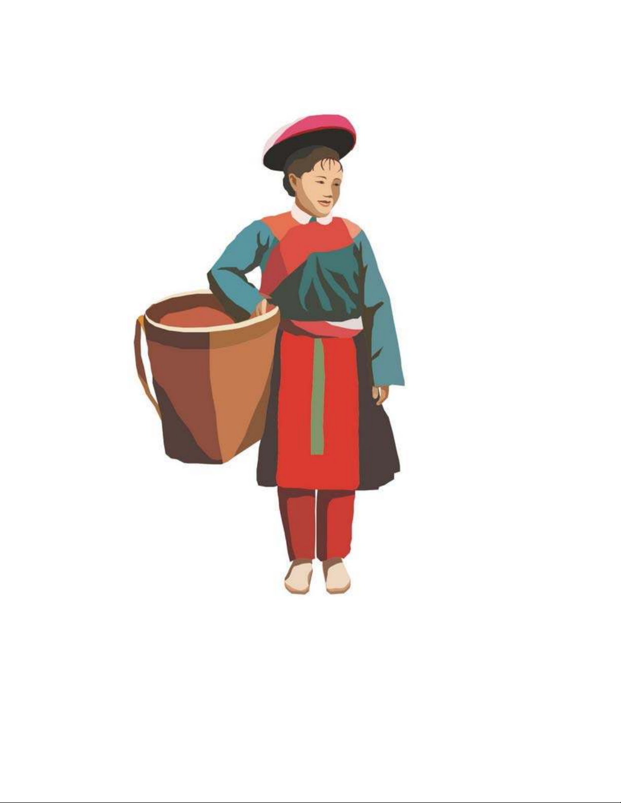 tr*ước được trang trí viền vải khác màu (thường là đỏ và hoa văn trên nền chàm). Phụ nữ