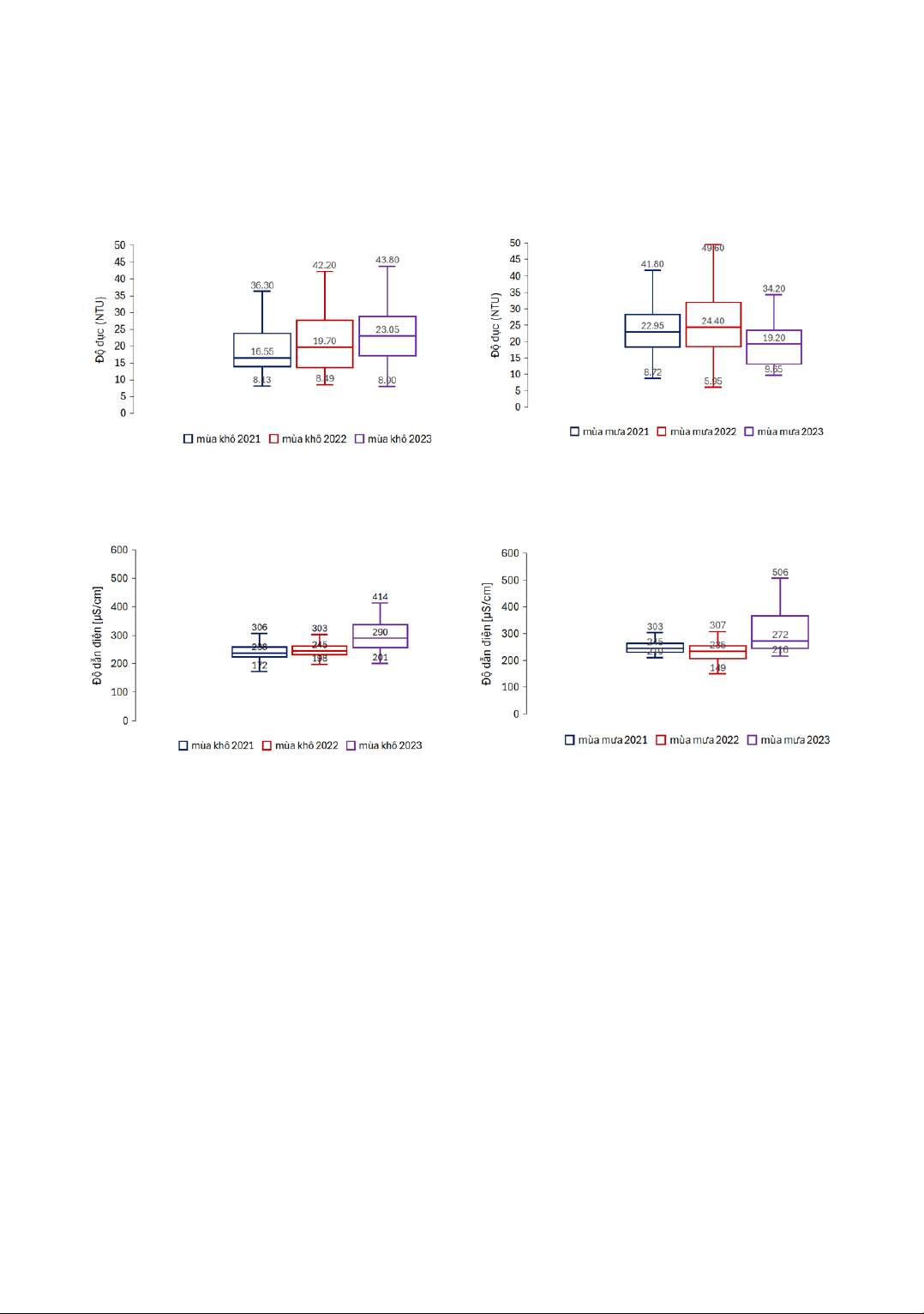 được đánh giá trên 4 nhóm chỉ tiêu chính: độ đục và độ dẫn điện (Hình 2và Hình 3, tương ứng), hàm