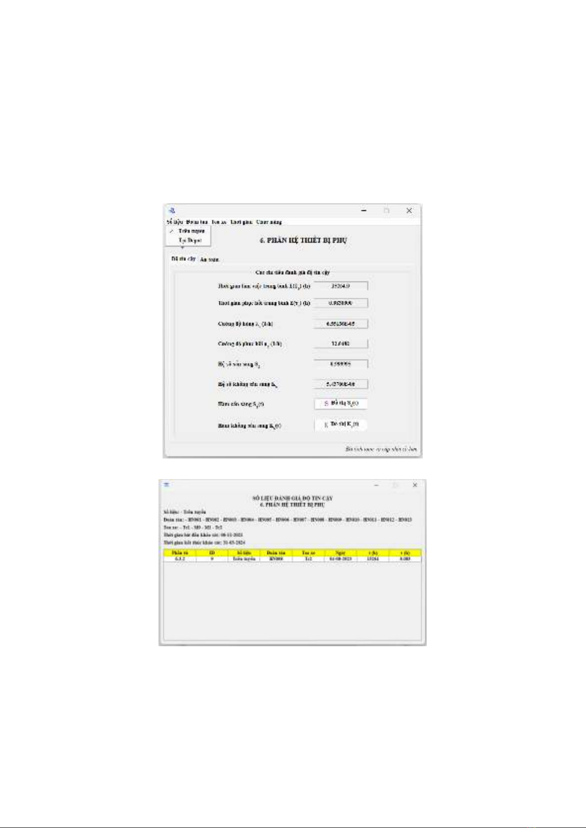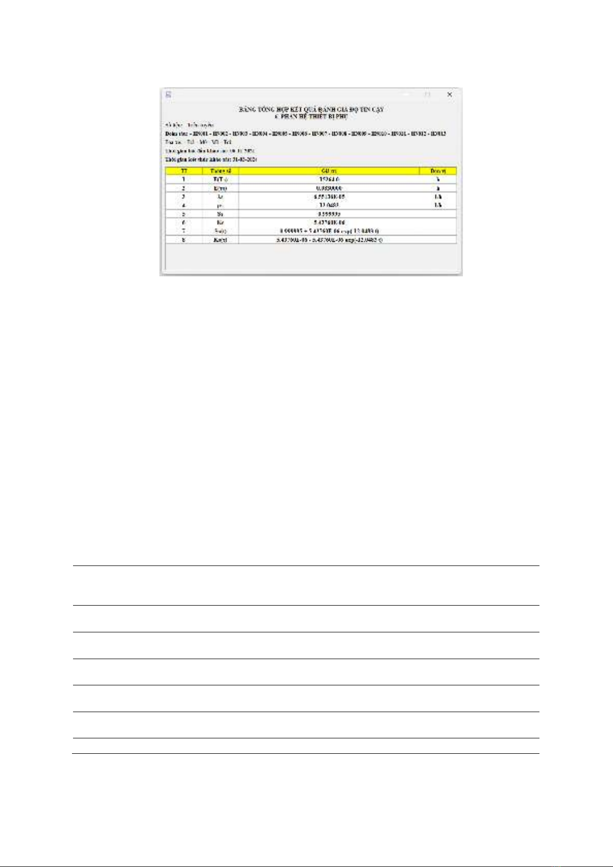 Hnh 4. Giao diện hin th cc ch tiêu đnh gi độ tin cậy ca phần tử.