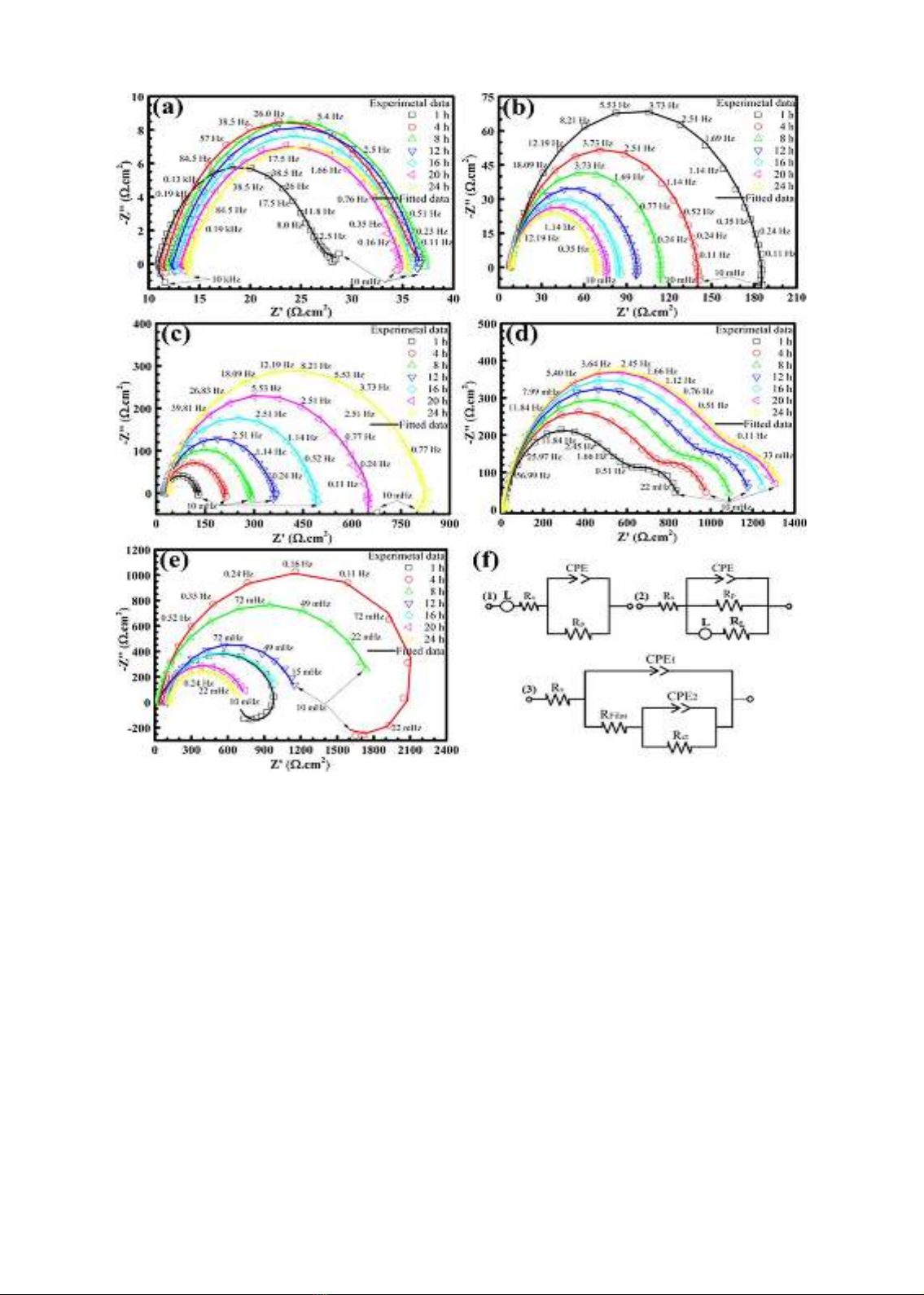 Hình 1 (a – e) mô tả phản ứng trở kháng điện hóa trong các phổ Nyquist (bao gồm Z’ là