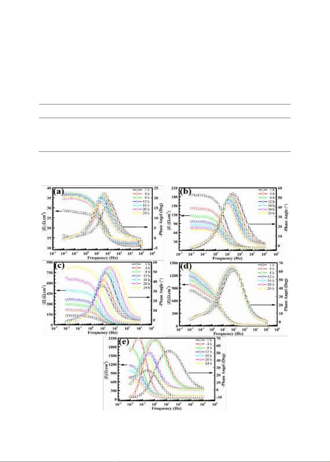 đo phổ trở kháng điện hóa (EIS) được thực hiện mỗi 1 giờ trong suốt 24 h, thông số điện áp