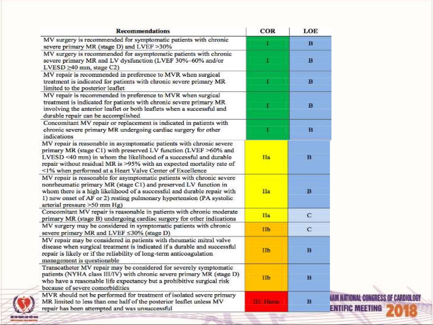 Recommendations for Chronic Primary MR