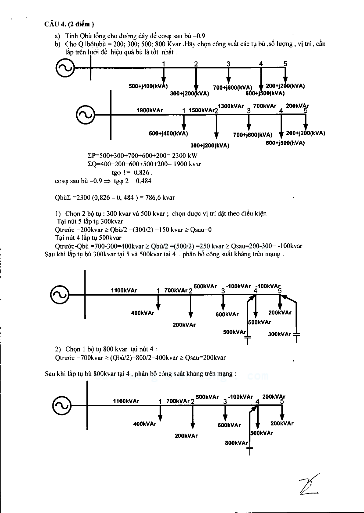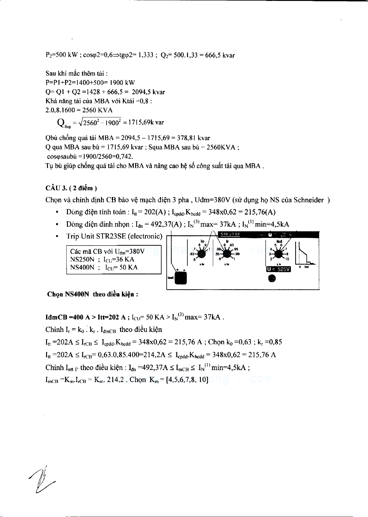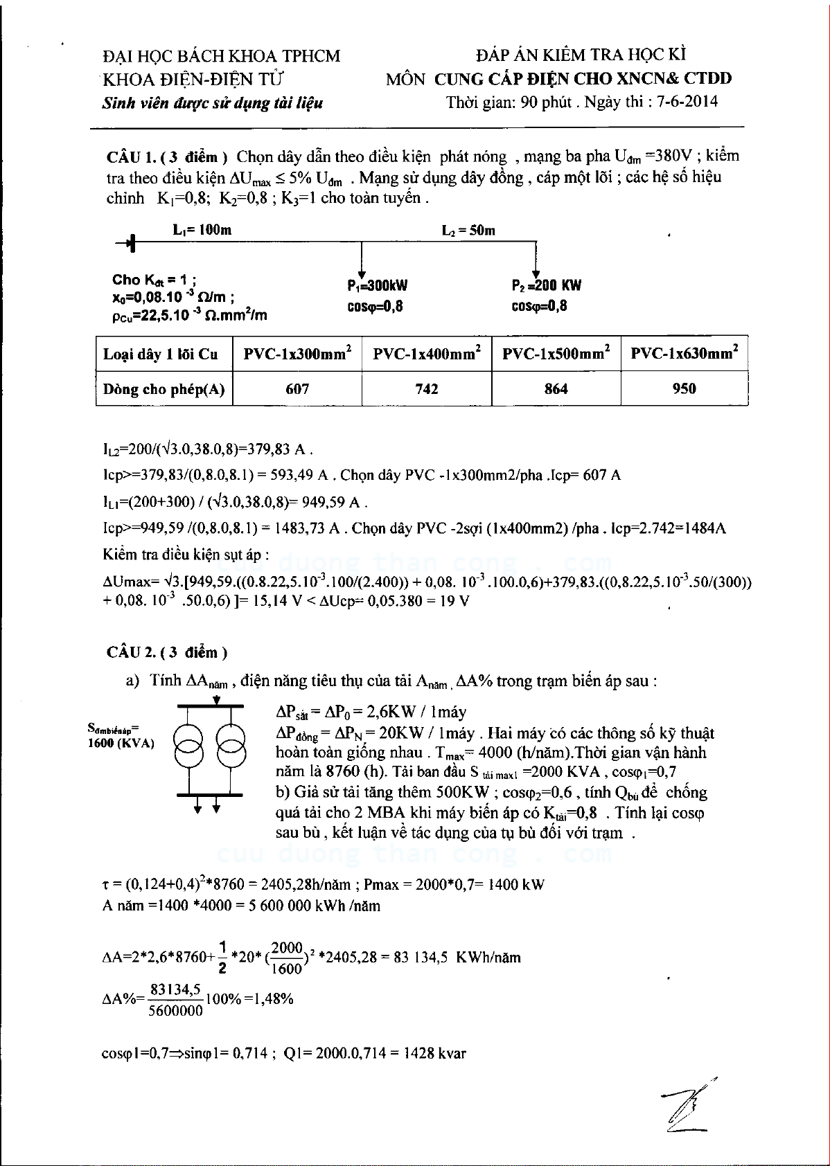 Đáp án đề kiểm tra học kỳ môn Cung cấp điện cho XNCN&CTDD