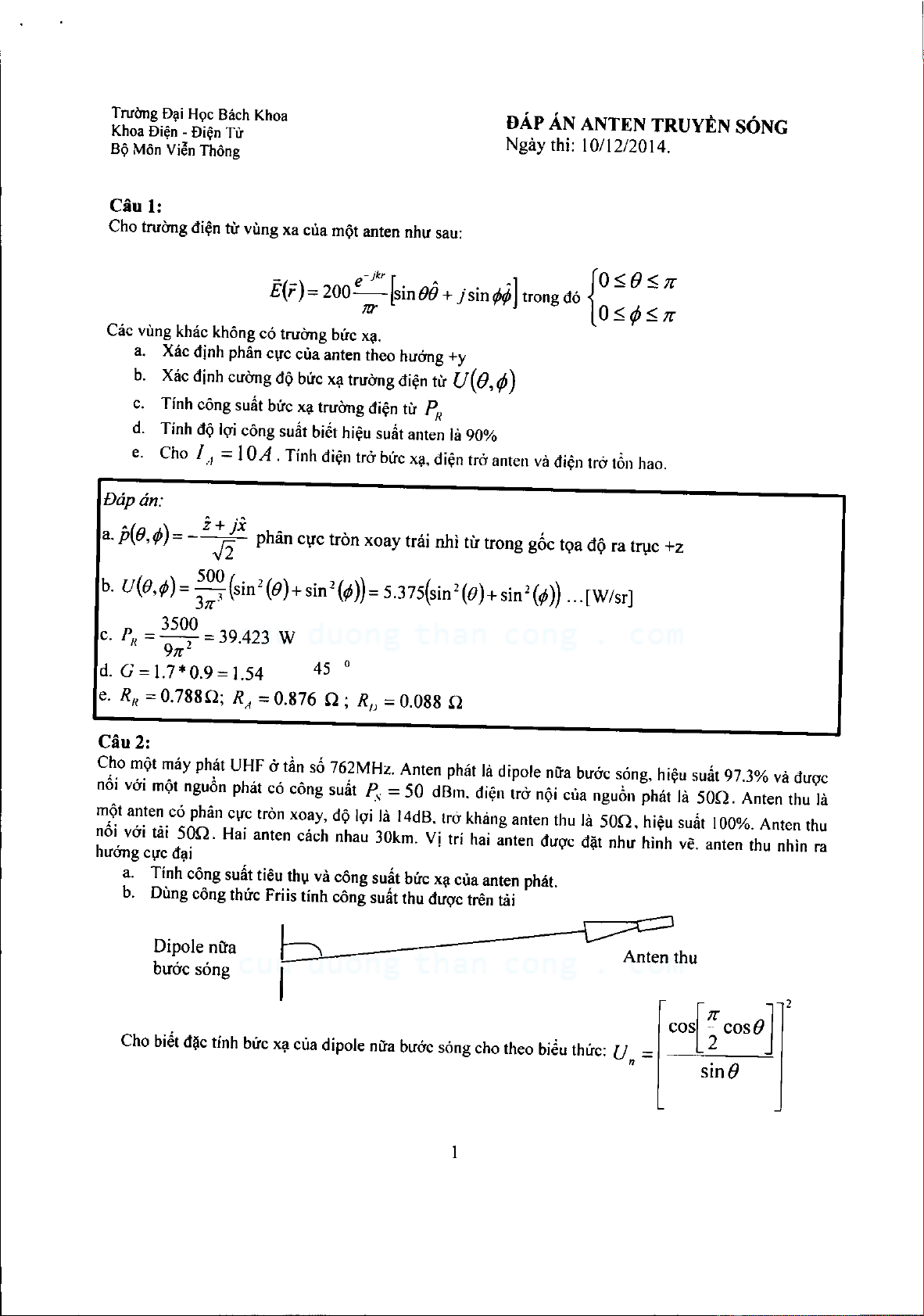 Đáp án đề thi Anten truyền sóng giúp cho các bạn sinh viên nắm bắt được cấu trúc và cách giải đề thi, dạng đề thi chính để có kế hoạch ôn thi một cách tốt hơn. Tài liệu hữu ích cho các các bạn sinh viên đang theo học môn này và những ai quan tâm đến môn học này dùng làm tài liệu tham khảo.