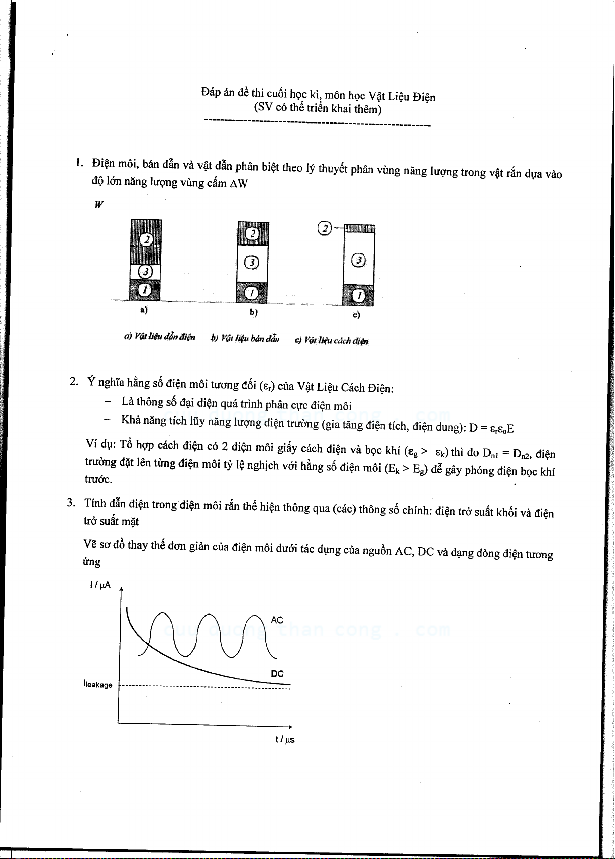 Đáp án đề thi cuối học kỳ môn Vật liệu điện
