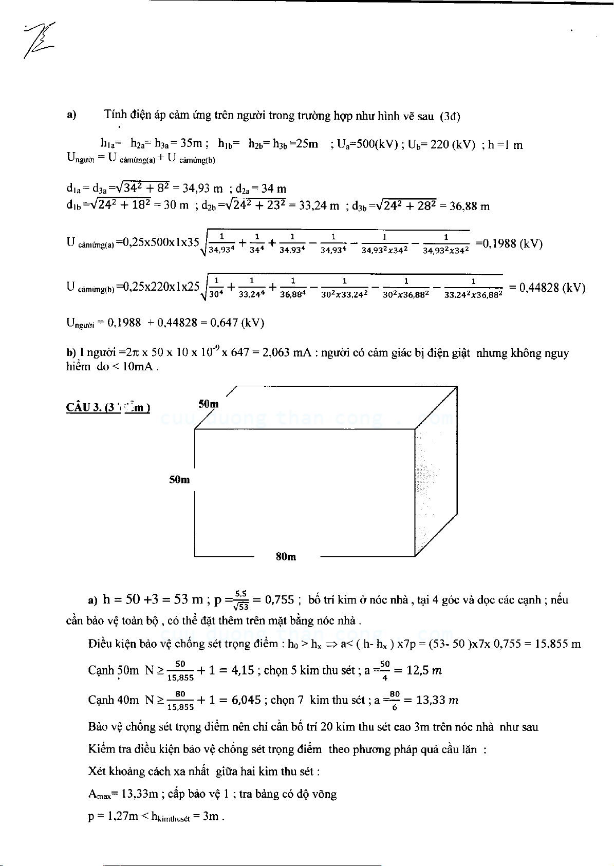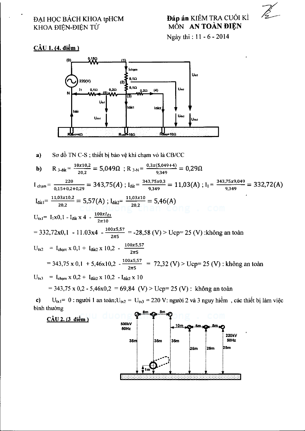 Đáp án đề thi cuối kỳ môn An toàn điện