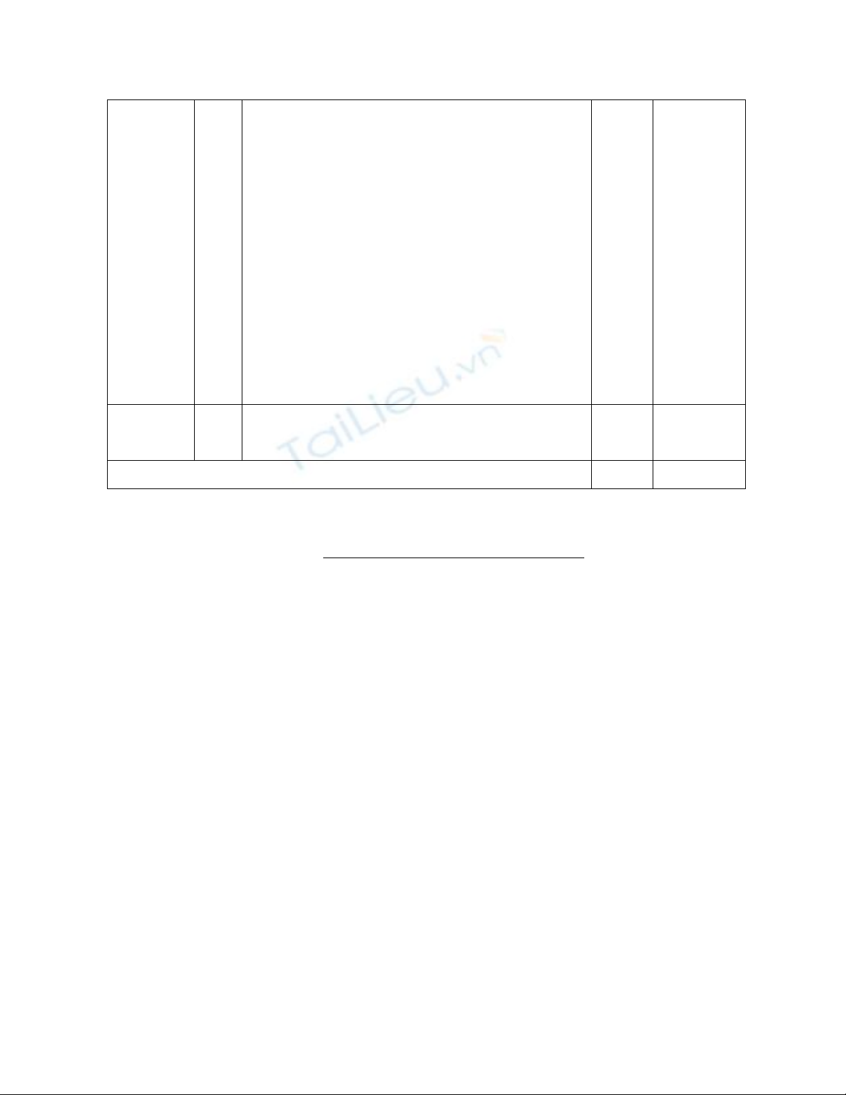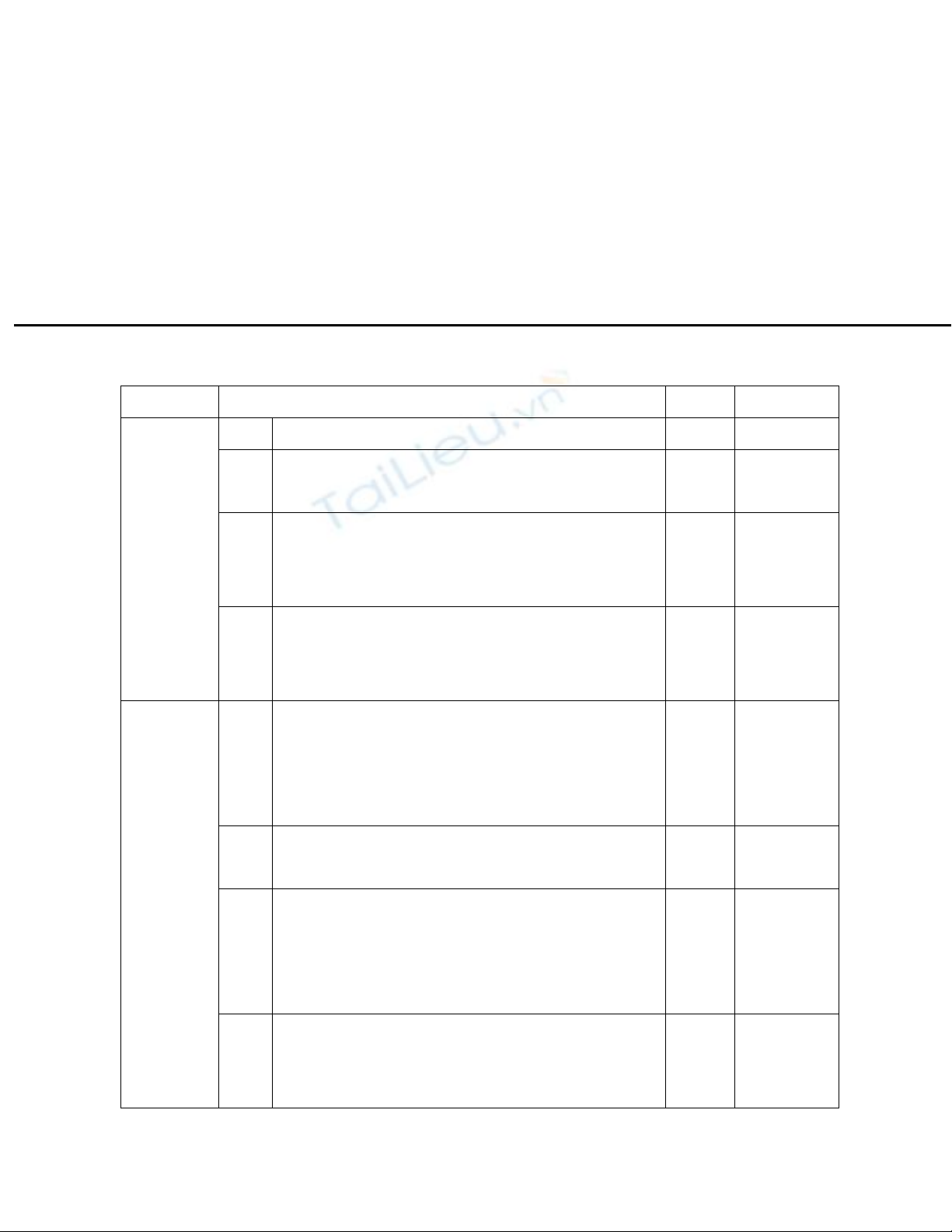 Câu hỏi Nội dung đáp án Điểm Ghi chú
