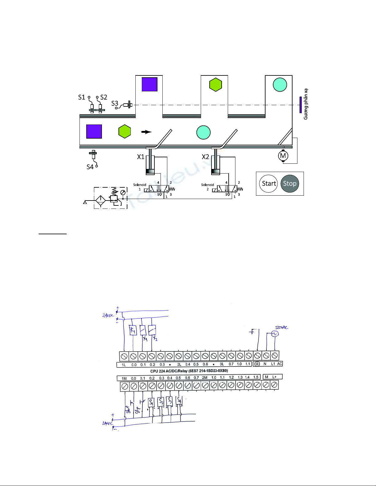 Vẽ mạch điện kết nối bộ điều khiển PLC S7-200 CPU224 AC/DC/RLY với các thiết bị ở trên.