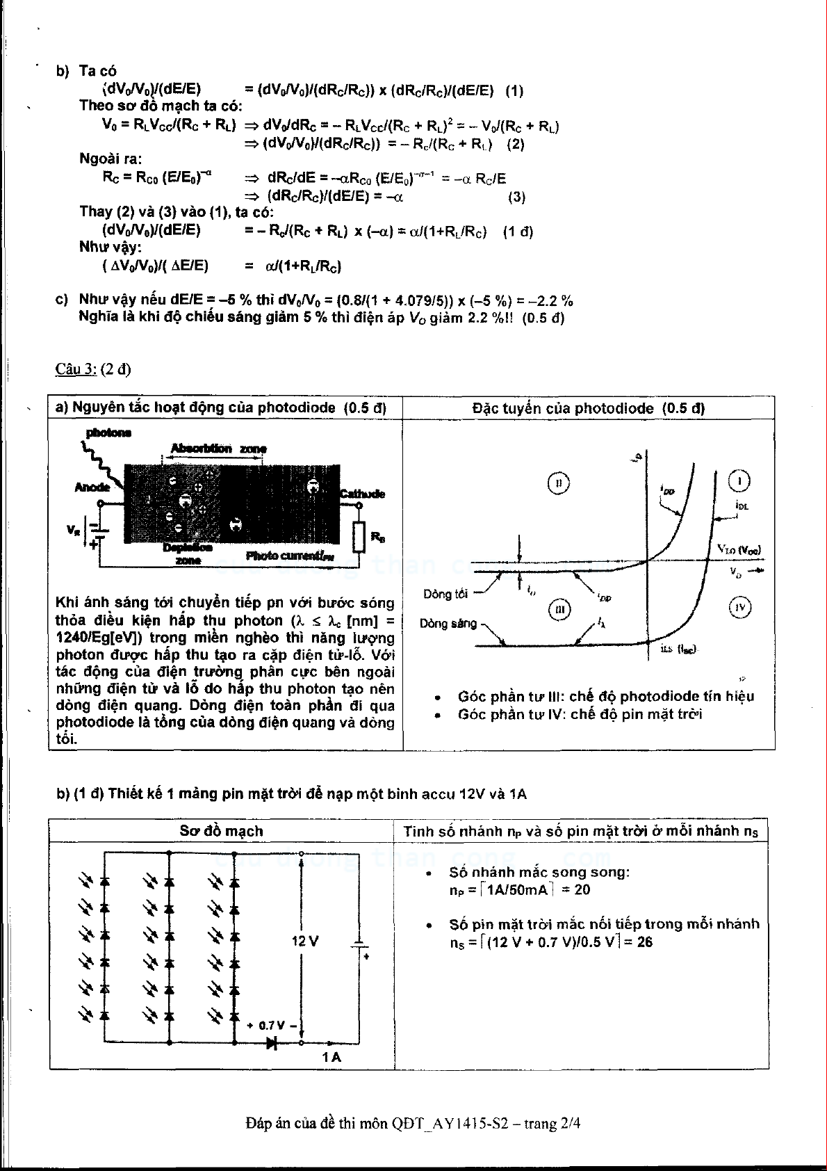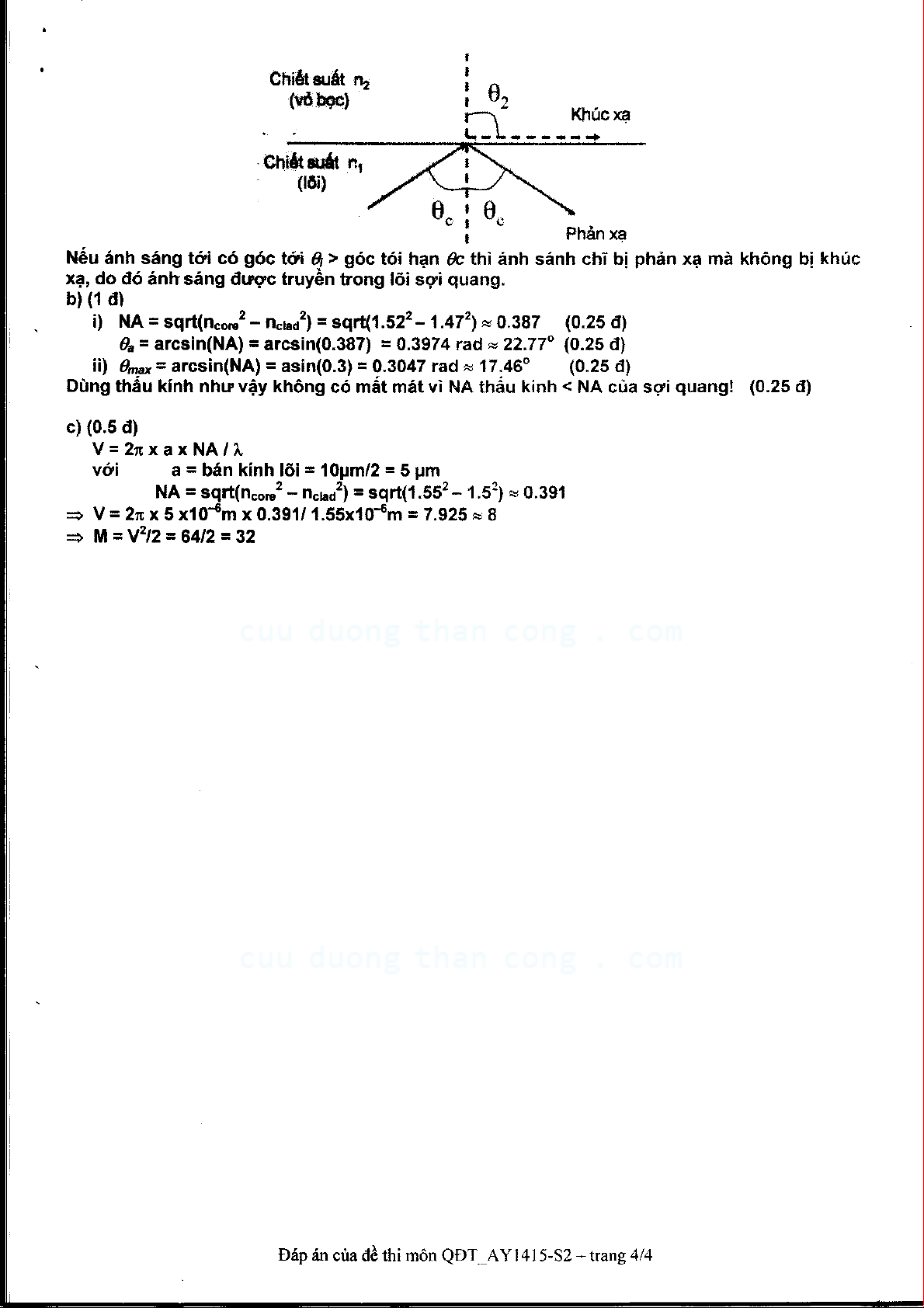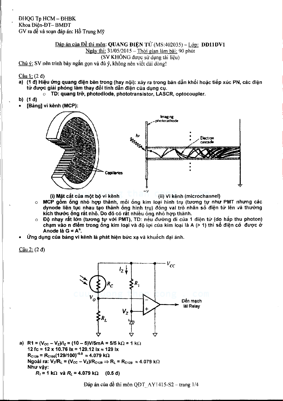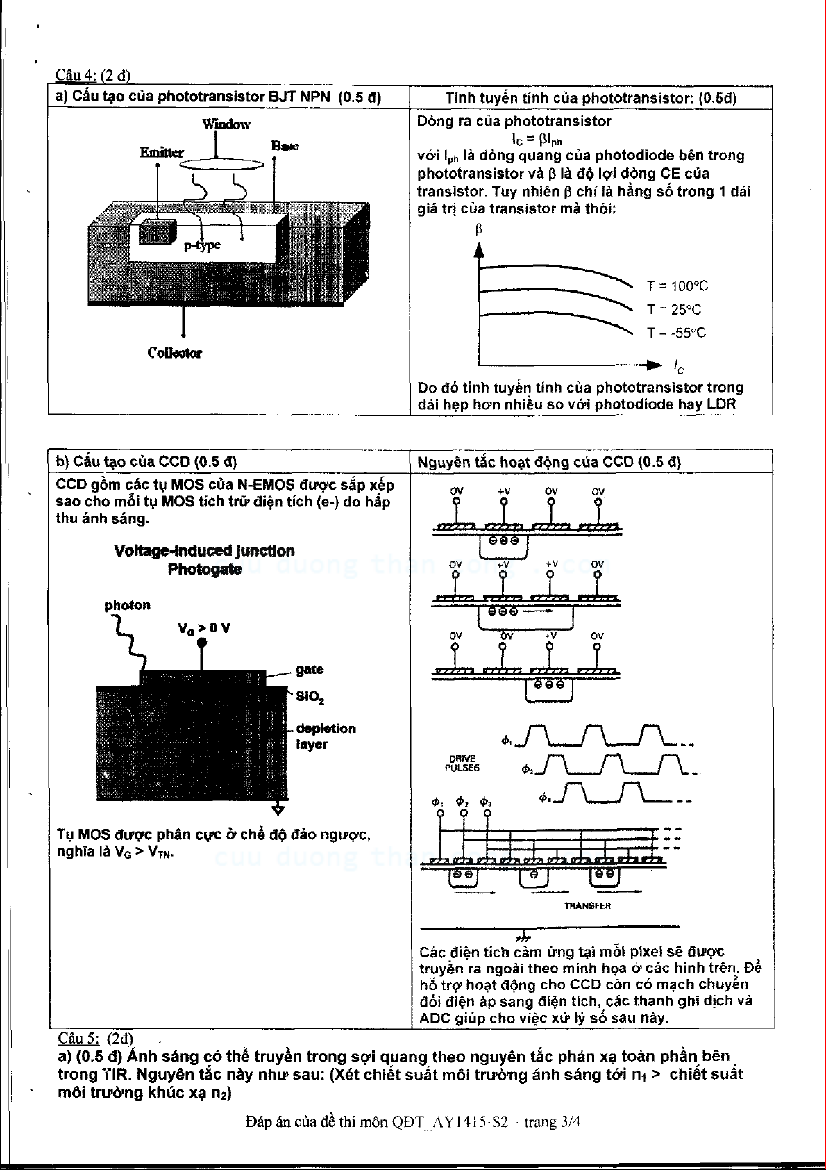 Đáp án đề thi môn Quang điện tử - Lớp DD11DV1