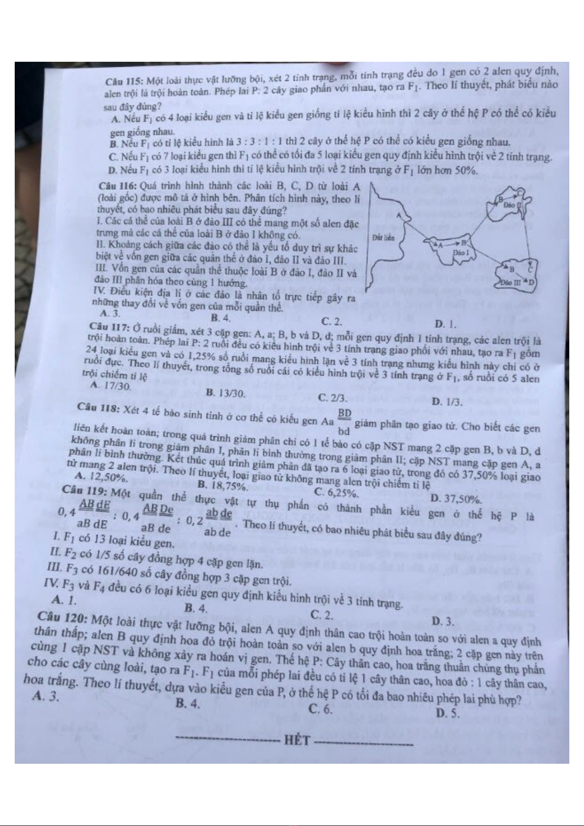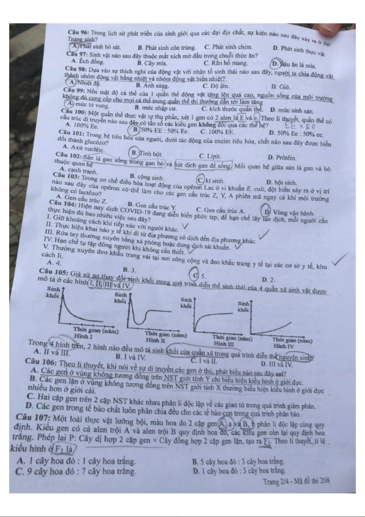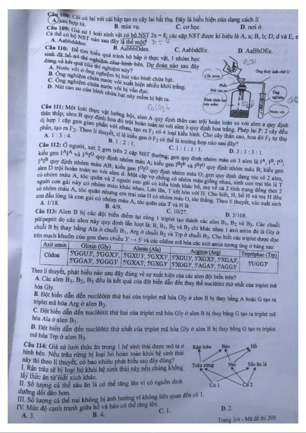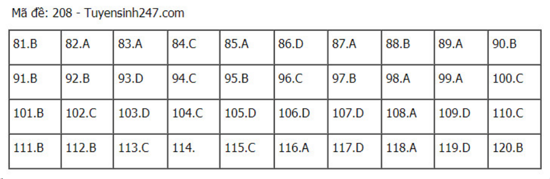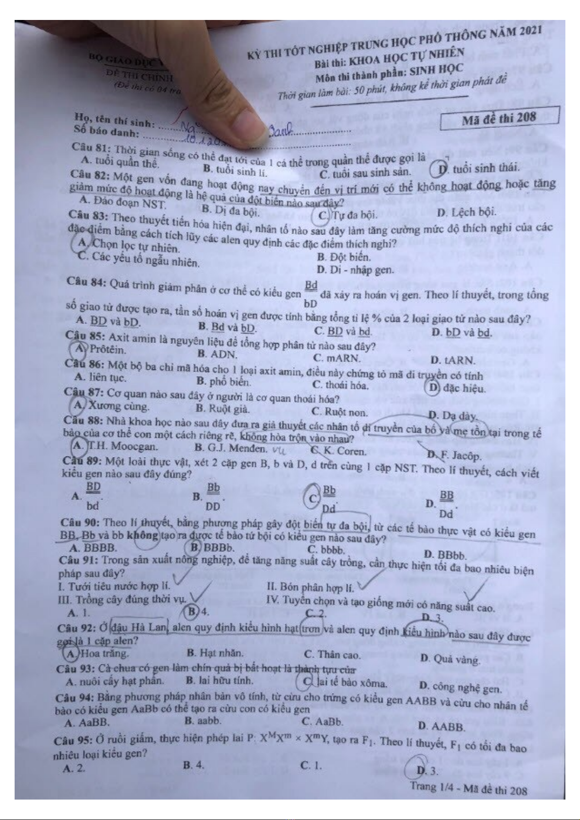 Đáp án đề thi THPT Quốc gia năm 2021 môn Sinh học