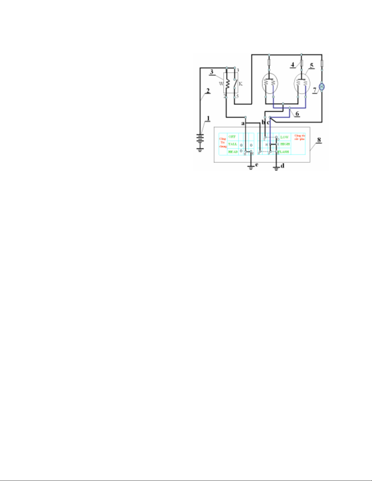 Đèn báo pha: (+) ắc qui cực 3 (rơ le) 5 cầu chì báo pha dây tóc đèn báo pha 7 cầu