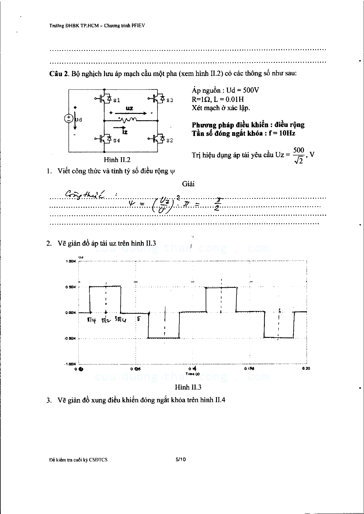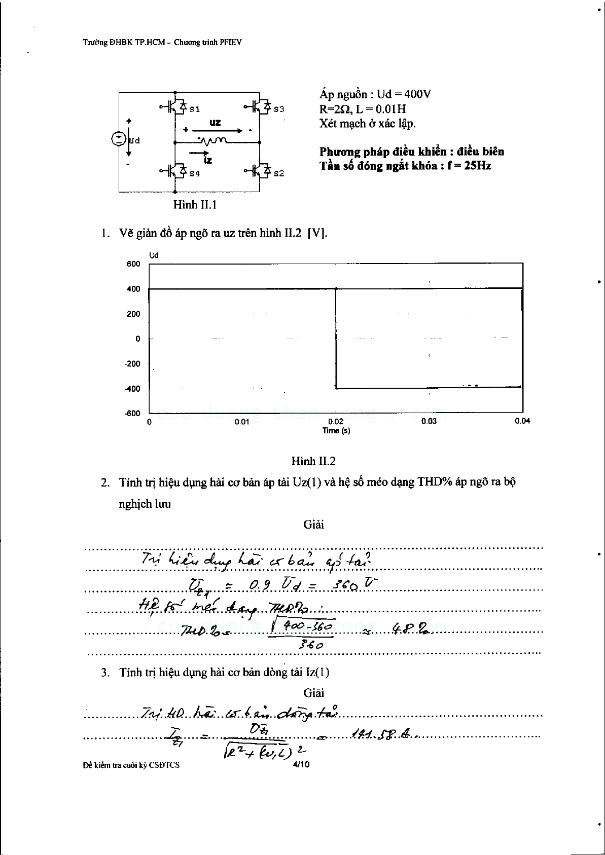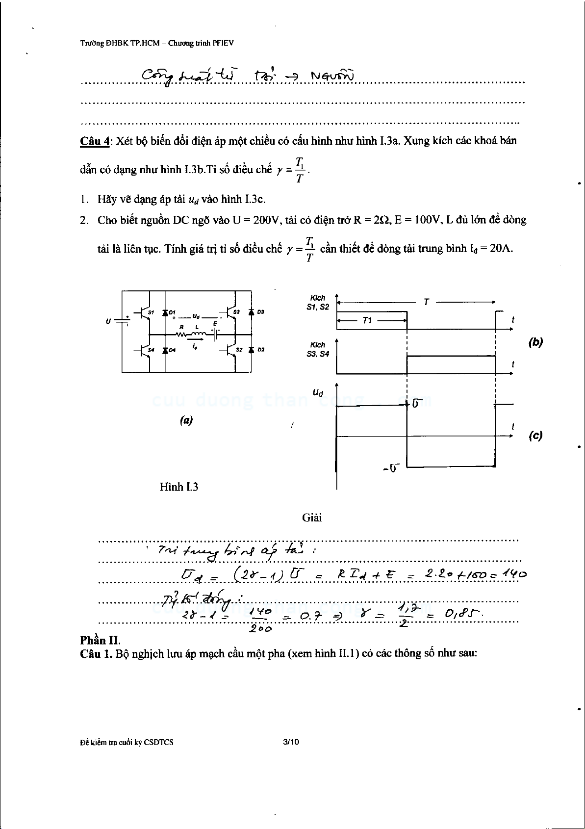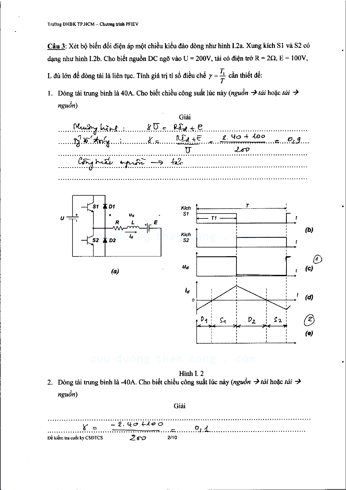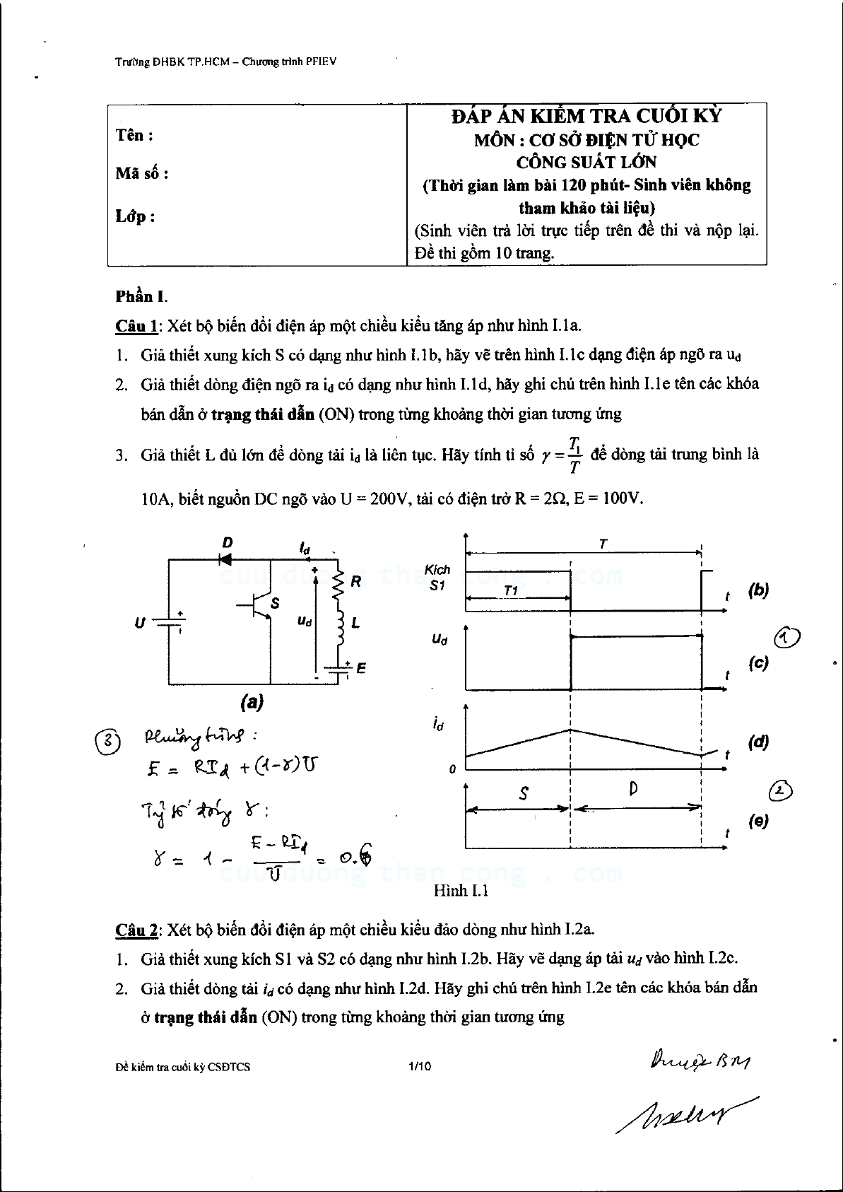 Đáp án kiểm tra cuối kỳ môn Cơ sở điện tử học công suất lớn