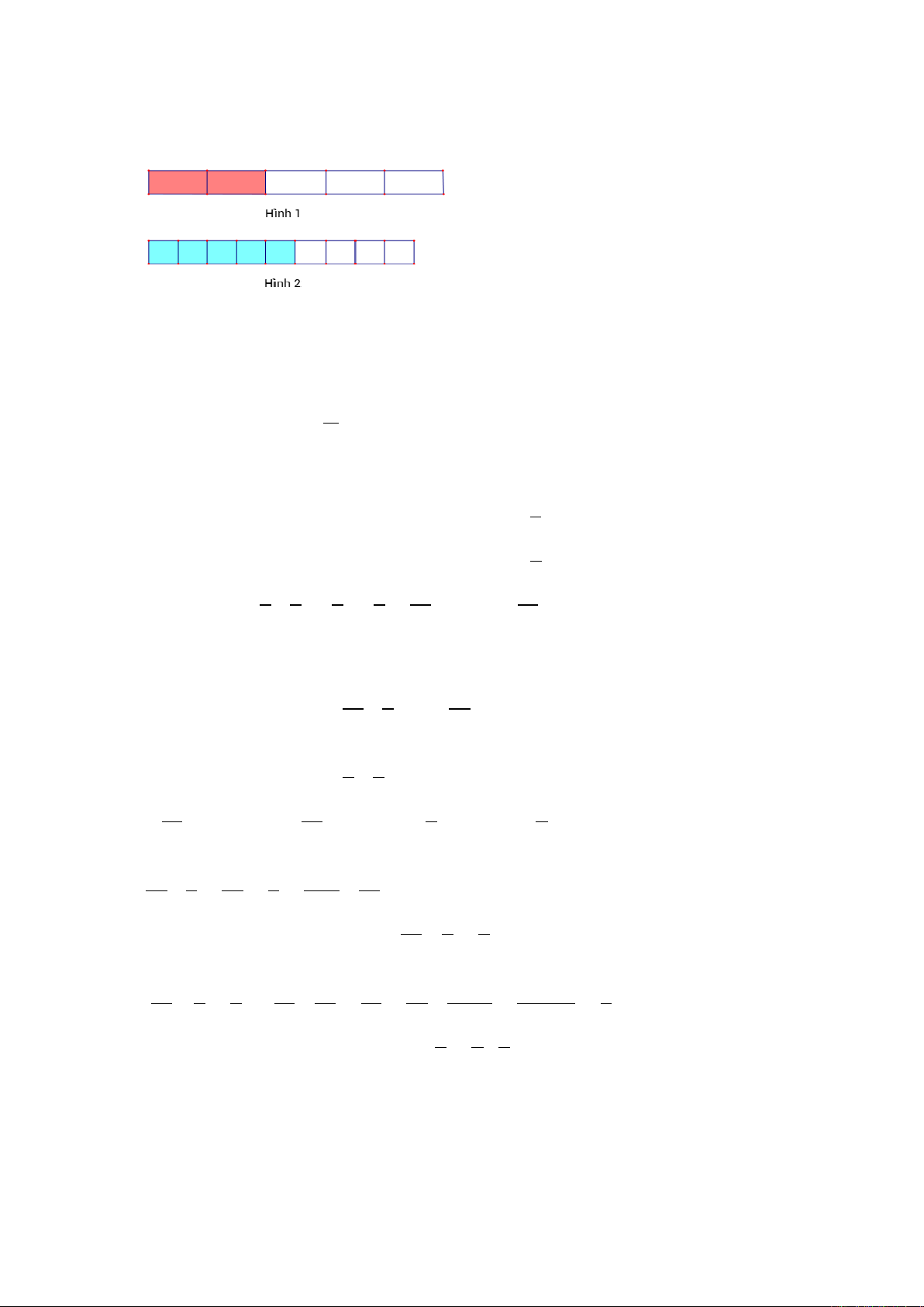phân số ở hình 1 chia phân số ở hình 2 .