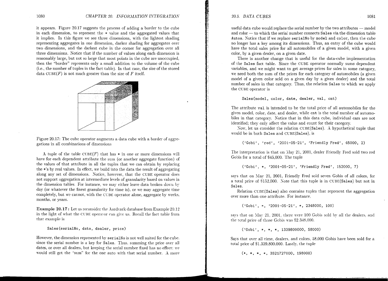 no longer has a key among its dimensions. Thus, an entry of the cube ~vould