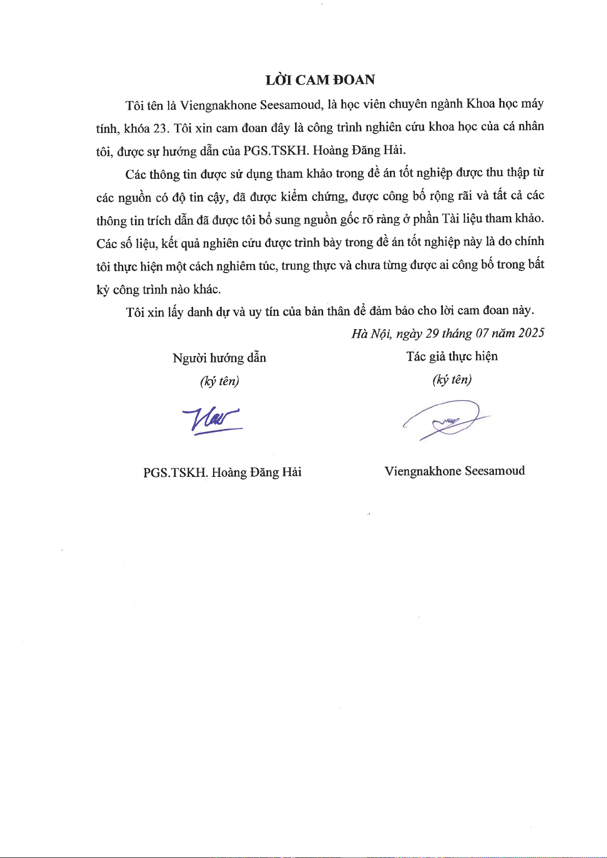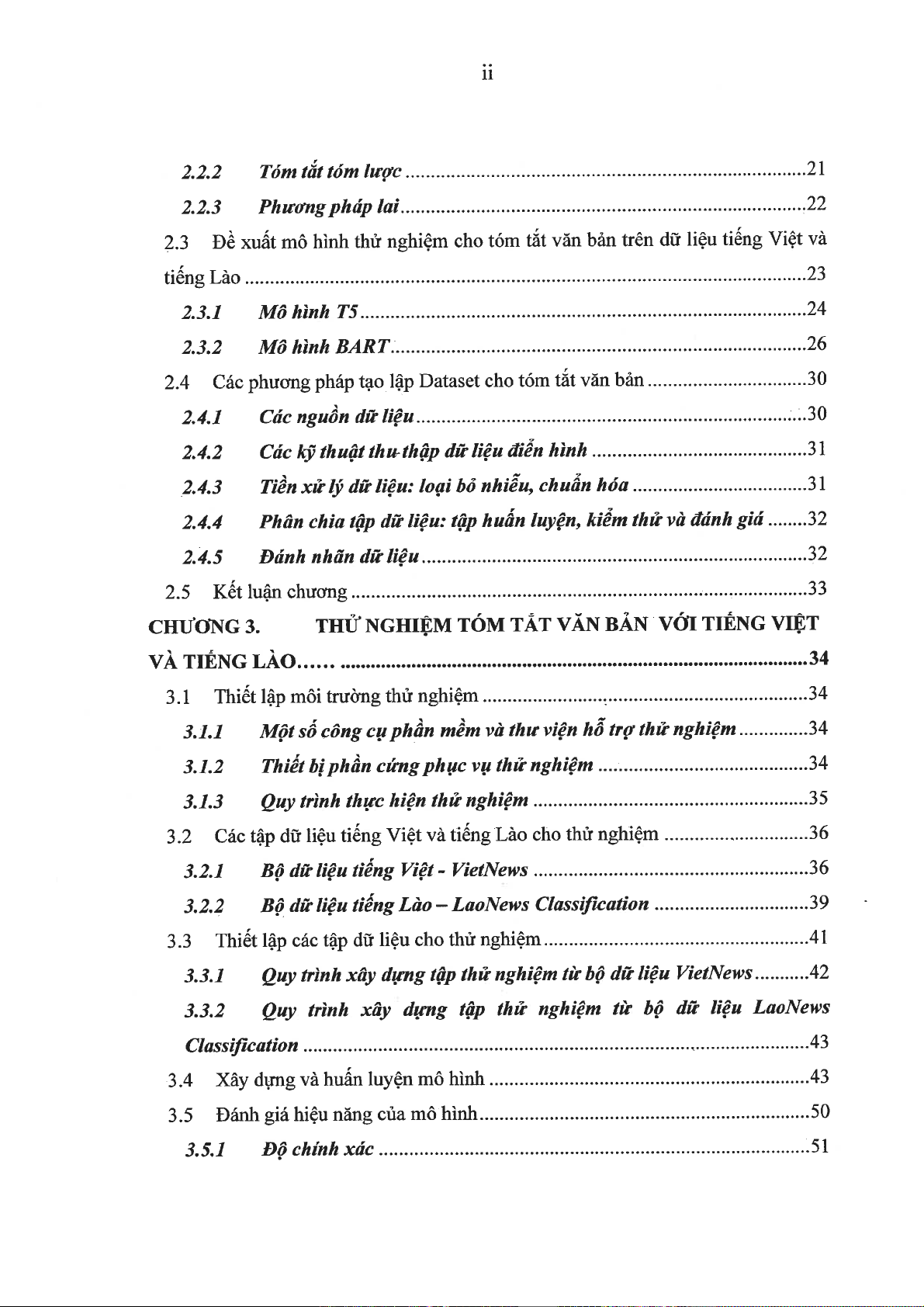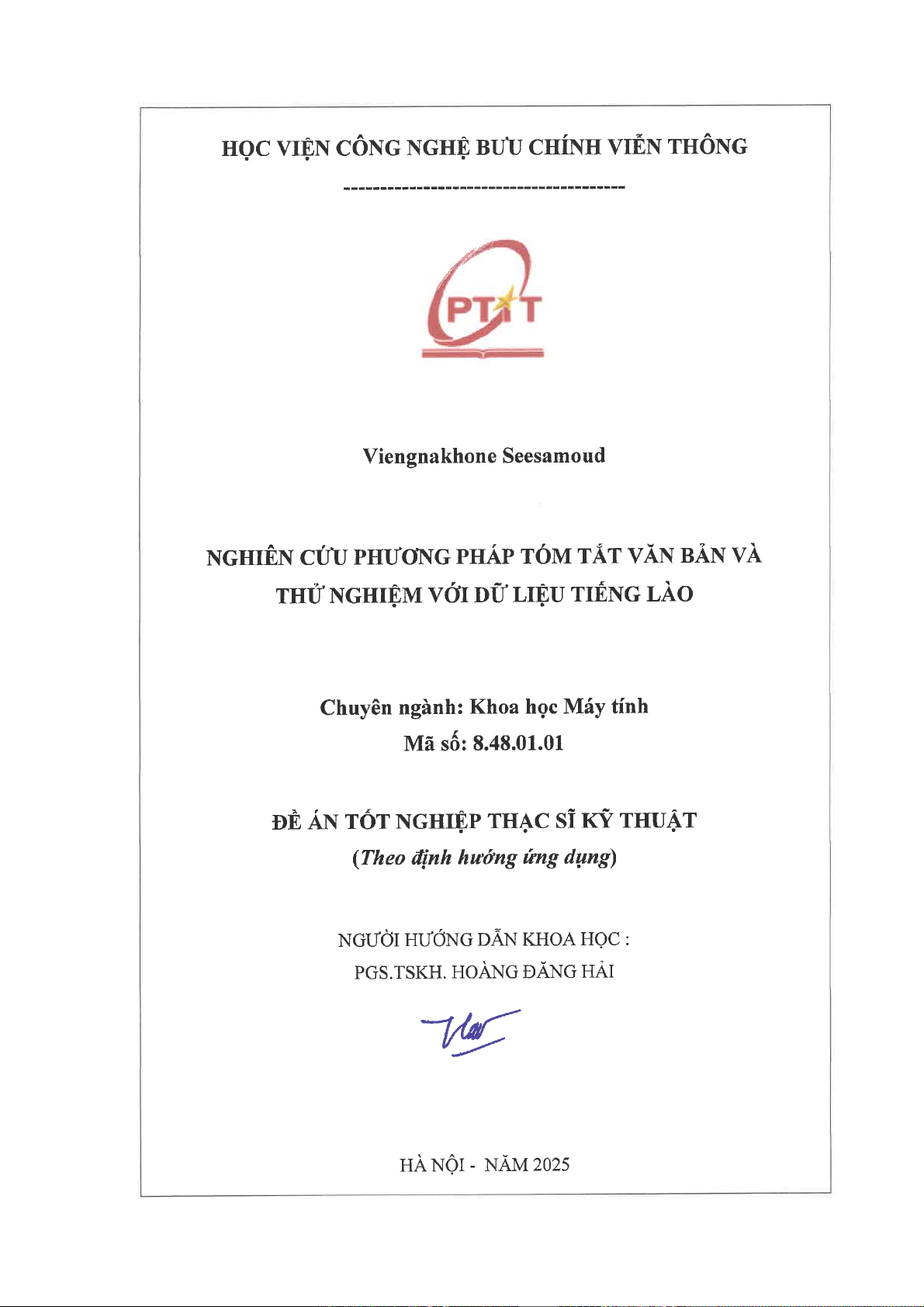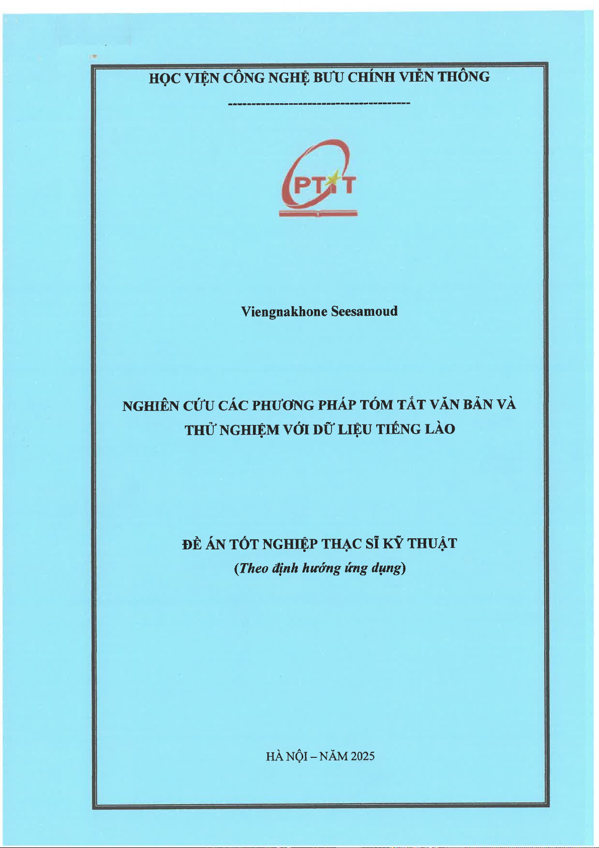 Đề án tập trung nghiên cứu sâu rộng về các phương pháp tóm tắt văn bản (TTVB) sử dụng Xử lý ngôn ngữ tự nhiên (NLP), đặc biệt là với dữ liệu tiếng Việt và tiếng Lào, nhằm giải quyết thách thức về rào cản ngôn ngữ và khối lượng thông tin khổng lồ. Luận văn bắt đầu bằng việc tổng quan về NLP và bài toán TTVB, phân loại TTVB thành tóm tắt trích xuất và tóm tắt tóm lược, đồng thời nêu bật tầm quan trọng cùng những ứng dụng thực tiễn trong nhiều lĩnh vực như tìm kiếm thông tin, truyền thông, giáo dục và tài chính. Luận văn khảo sát các phương pháp và mô hình NLP hiện đại, bao gồm các kiến trúc Transformer, BART, PEGASUS và T5, đồng thời phân tích những khó khăn chính trong TTVB như đảm bảo tính chính xác ngữ nghĩa, xử lý ngữ cảnh phức tạp, giới hạn dữ liệu huấn luyện và chi phí tính toán cao. Để kiểm chứng, đề án tiến hành thử nghiệm các mô hình đề xuất trên các tập dữ liệu thực tế như VietNews cho tiếng Việt và LaoNews Classification cho tiếng Lào. Quá trình này bao gồm thiết lập môi trường, xây dựng, huấn luyện và đánh giá hiệu năng của mô hình. Kết quả thử nghiệm cung cấp cái nhìn định lượng về mức độ phù hợp của các phương pháp NLP đối với đặc thù ngôn ngữ Việt và Lào, đặt nền tảng cho việc phát triển các ứng dụng dịch thuật và hỗ trợ giao tiếp song ngữ trong tương lai, góp phần thúc đẩy hợp tác khu vực Đông Nam Á.