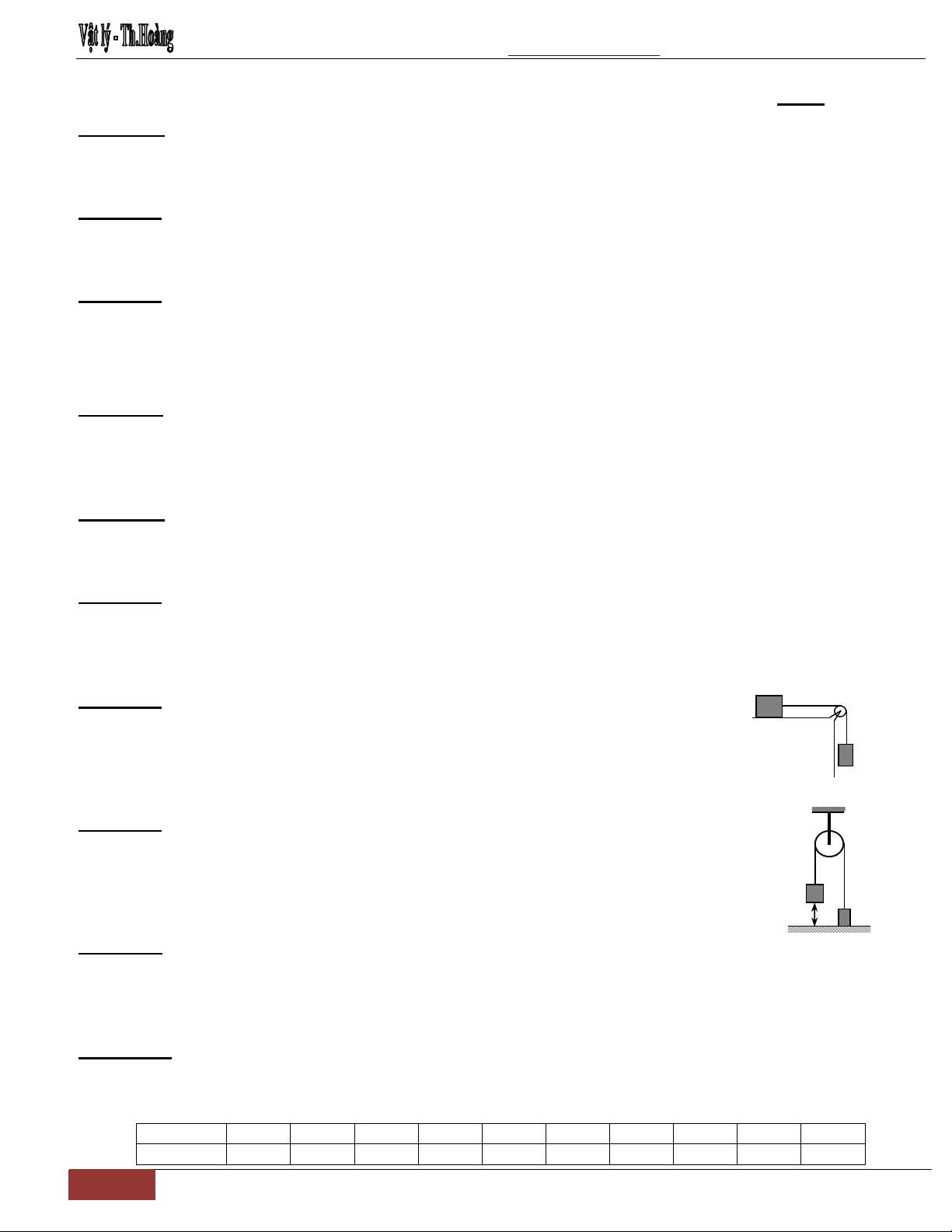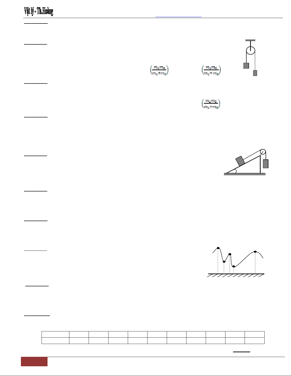 Câu hỏi 5: Cho cơ hệ như hình vẽ, ròng rọc và dây đều nhẹ và không ma sát. Các vật nặng