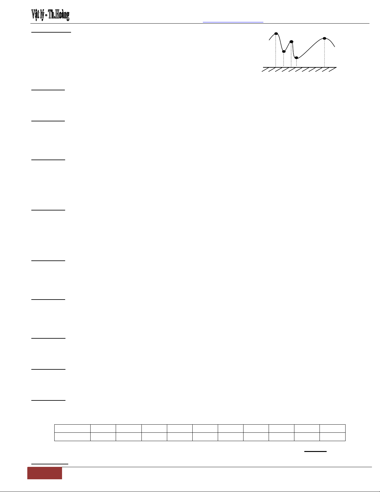Câu hỏi 20: Một vật khối lượng 3kg đặt ở một vị trí trọng trường mà có thế năng là Wt1 = 600J. Thả vật rơi tự do tới mặt