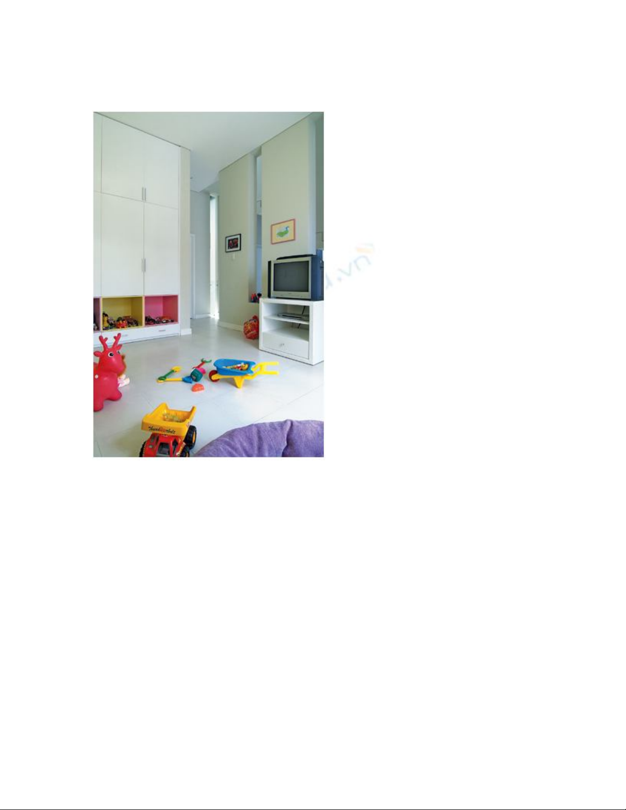 thất nhỏ gọn, nép sát vách nhường không gian còn lại cho trẻ có khoảng trống để