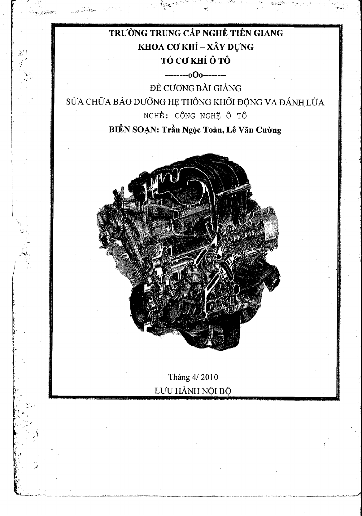 (NB) Nội dung Đề cương Bài giảng Sửa chữa và Bảo dưỡng hệ thống khởi động và đánh lửa do Trần Ngọc Toàn, Lê Văn Cường biên soạn nhằm giúp học viên nắm rõ các yêu cầu, nhiệm vụ chung của hệ thống khởi động và hệ thống đánh lửa trên ô tô, giải thích được sơ đồ cấu tạo và nguyên lý hoạt động chung của hệ thống, trình bày cấu tạo, nguyên lý hoạt động của các bộ phận trong hệ thống, nắm rõ quy trình tháo lắp, phương pháp kiểm tra, bảo dưỡng, sửa chữa các chi tiết, bộ phận của hệ thống. Đồng thời giúp học viên sử dụng đúng, đảm bảo chính xác, an toàn các dụng cụ dùng trong quá trình sửa chữa, bảo dưỡng.