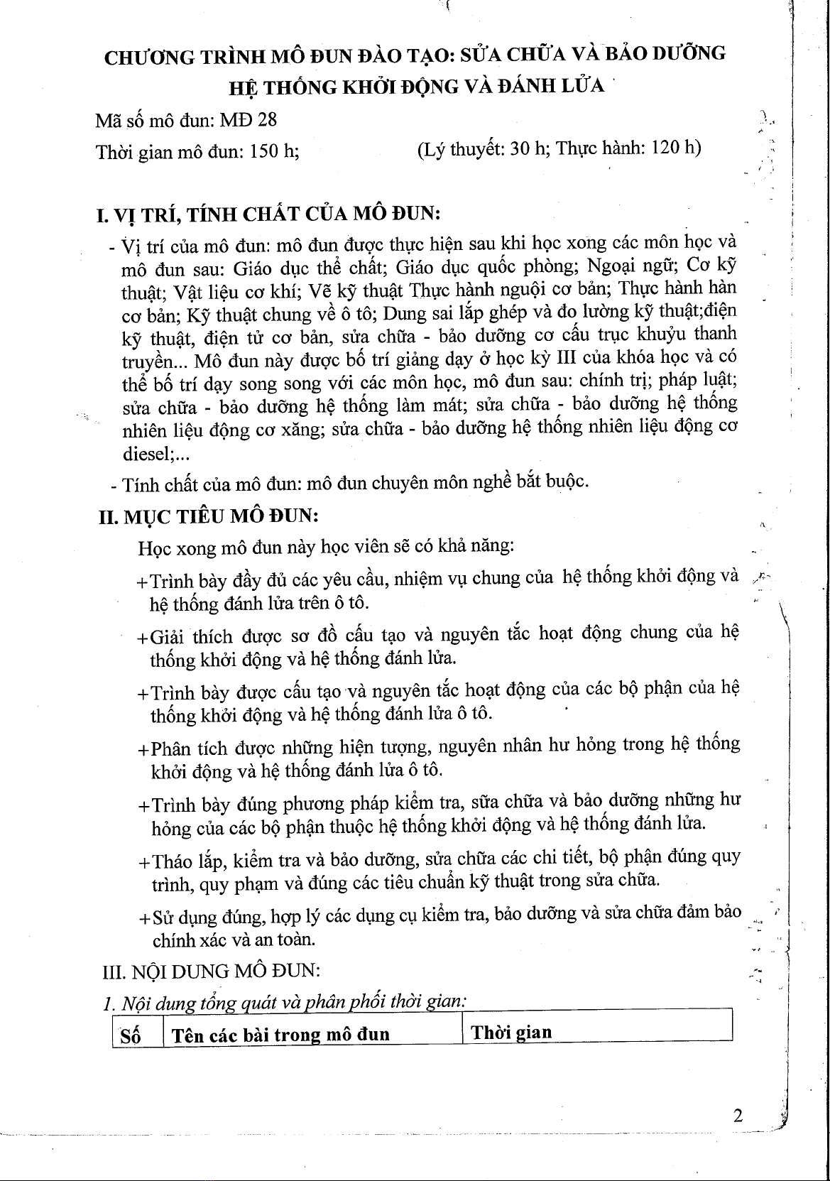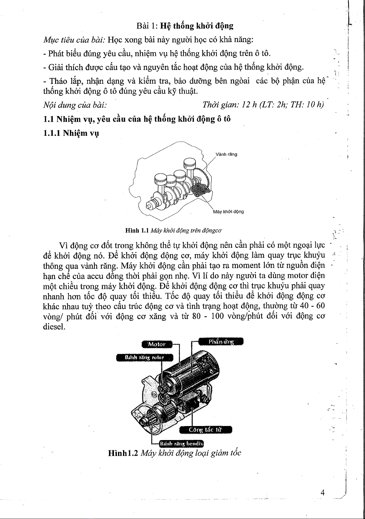 Đề cương Bài giảng Sửa chữa và Bảo dưỡng hệ thống khởi động và đánh lửa