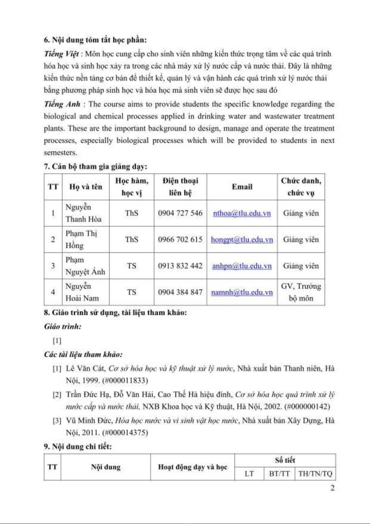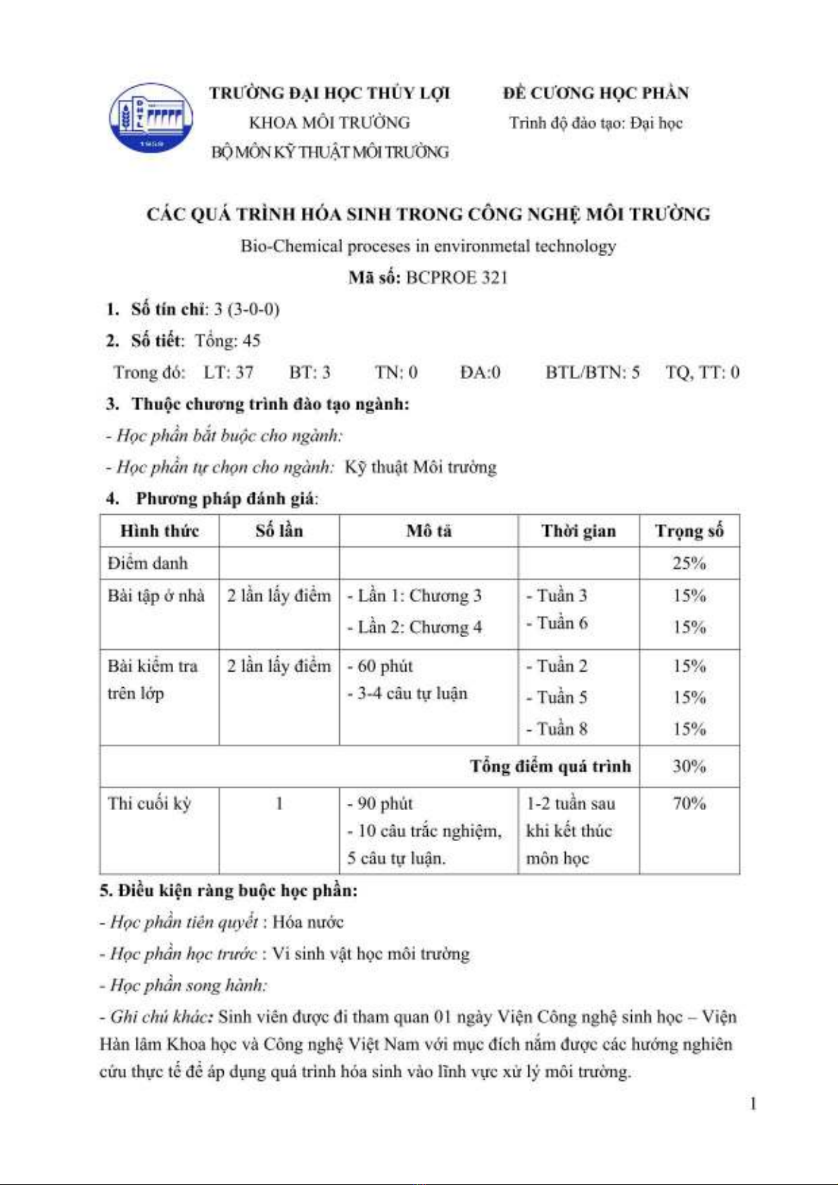Đề cương học phần Các quá trình hóa sinh trong công nghệ môi trường - ĐH Thủy Lợi