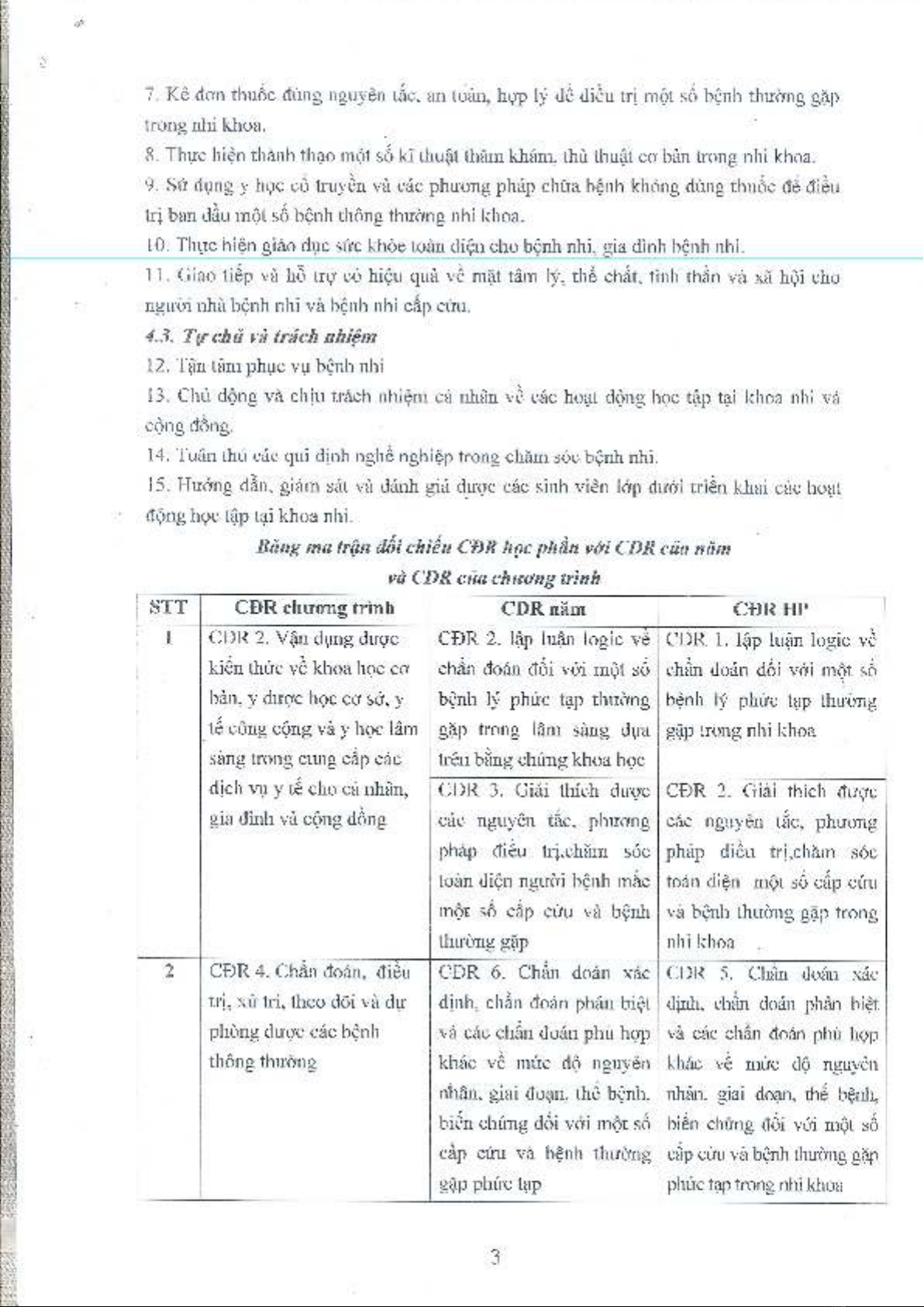 Học phần 'Nhi khoa 3' có mục đích giúp sinh viên hoàn thiện kĩ năng chẩn đoán và điều trị các bệnh lý nhi khoa, bao gồm các bệnh lý khác và phức tạp hơn mà các học phần trước chưa được học.