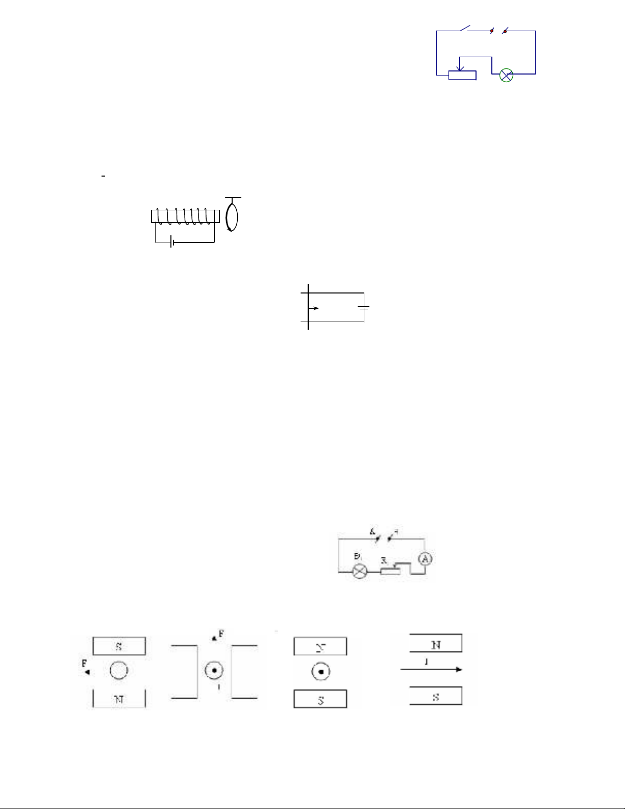 ampe kế đo cường độ dòng điện qua đèn và một khóa k đóng mở mạch điện.