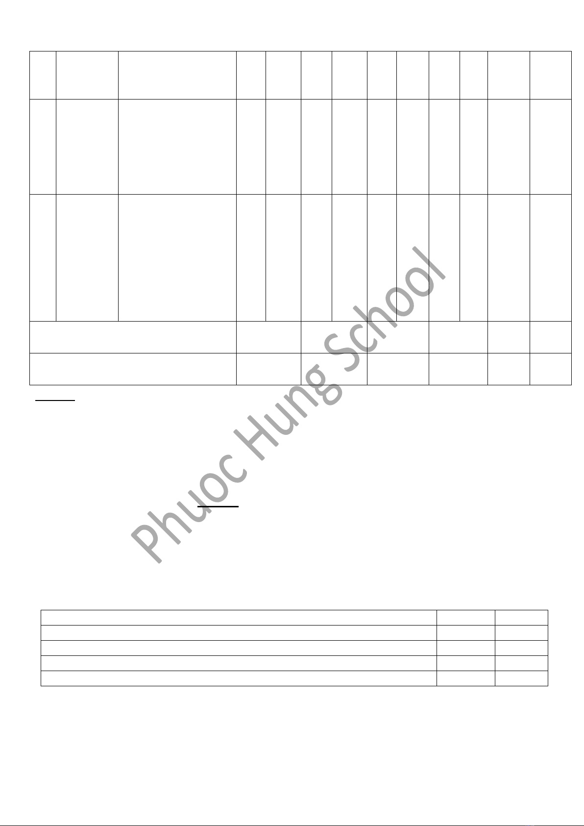 Lưu ý: Nội dung đề thi có thể được thay đổi (trong phạm vi 10%) so với ma trận.