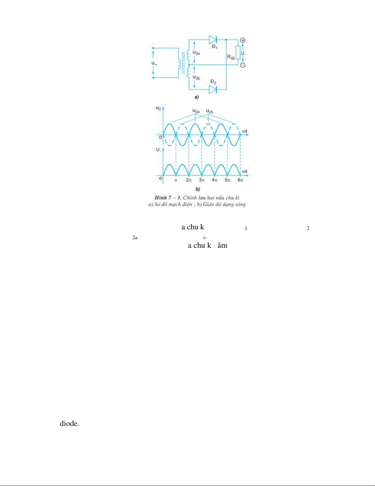● Trong khoảng π → 2 π (nửa chu kỳ âm) : Đ2 phân cực thuận, Đ1 phân cực
