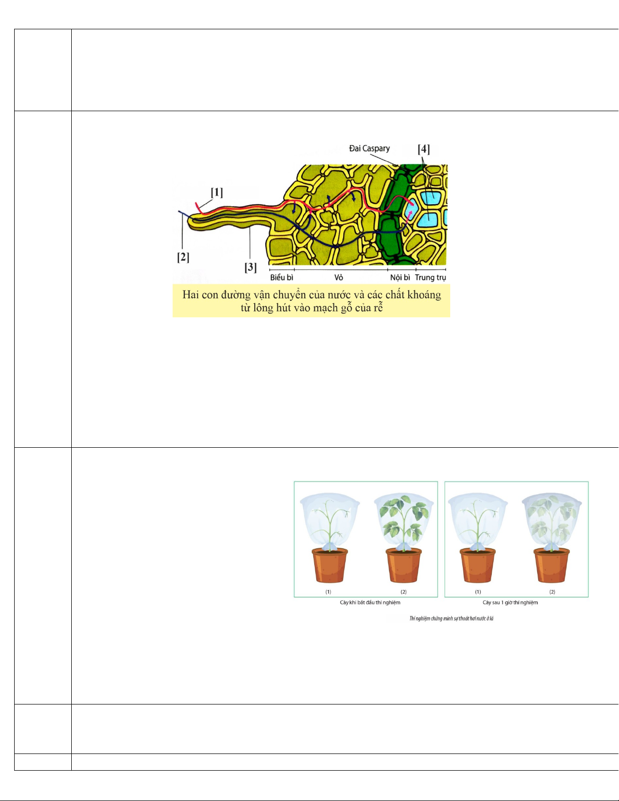 Câu 4: Qua thí nghiệm chứng minh sự hút nước ở rễ (mô phỏng thí nghiệm hình dưới).