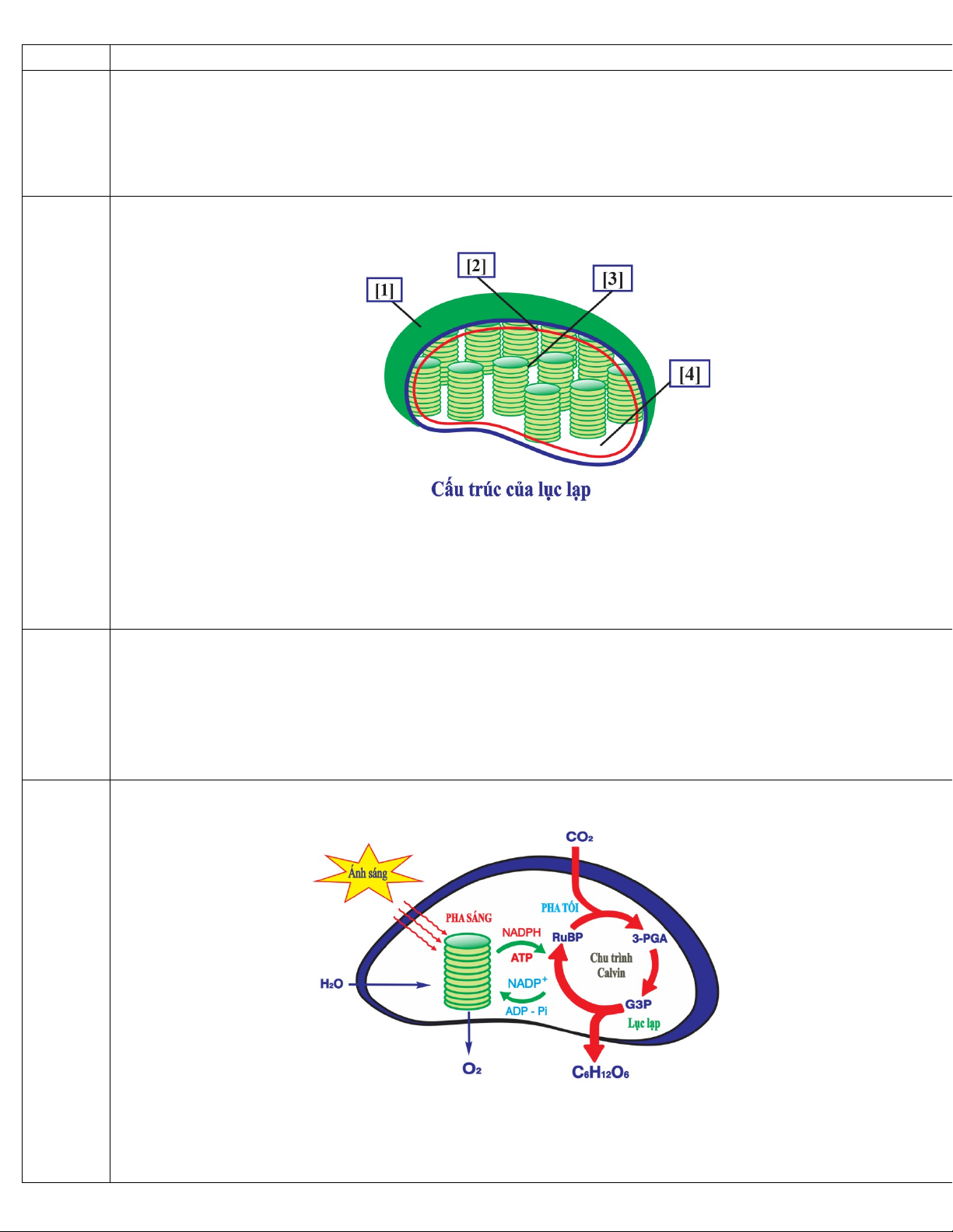 Câu 15: Trong quang hợp ở thực vật, hình mô tả cấu tạo của lục lạp ở tế bào thực vật.